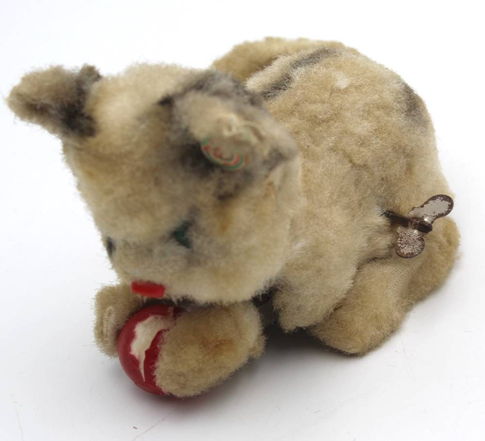 Laufkatze mit Ball, Schlüsselwerk läuft, bespielt, H-10 cm, L-15 cm [1]