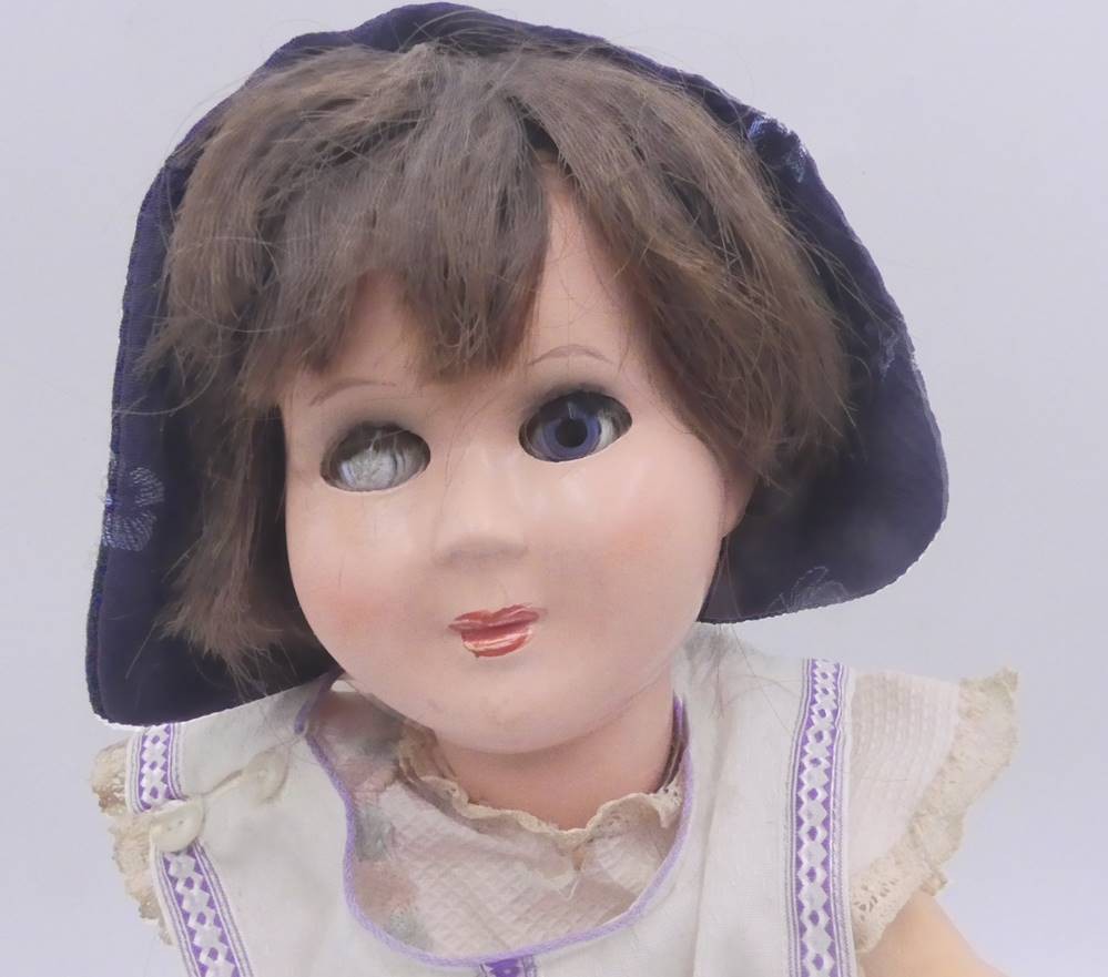 Mädchenpuppe, Massekörper. Kopf Kunststoff, ein Auge defekt, bespielt, H-38 cm, kein Hersteller [1]