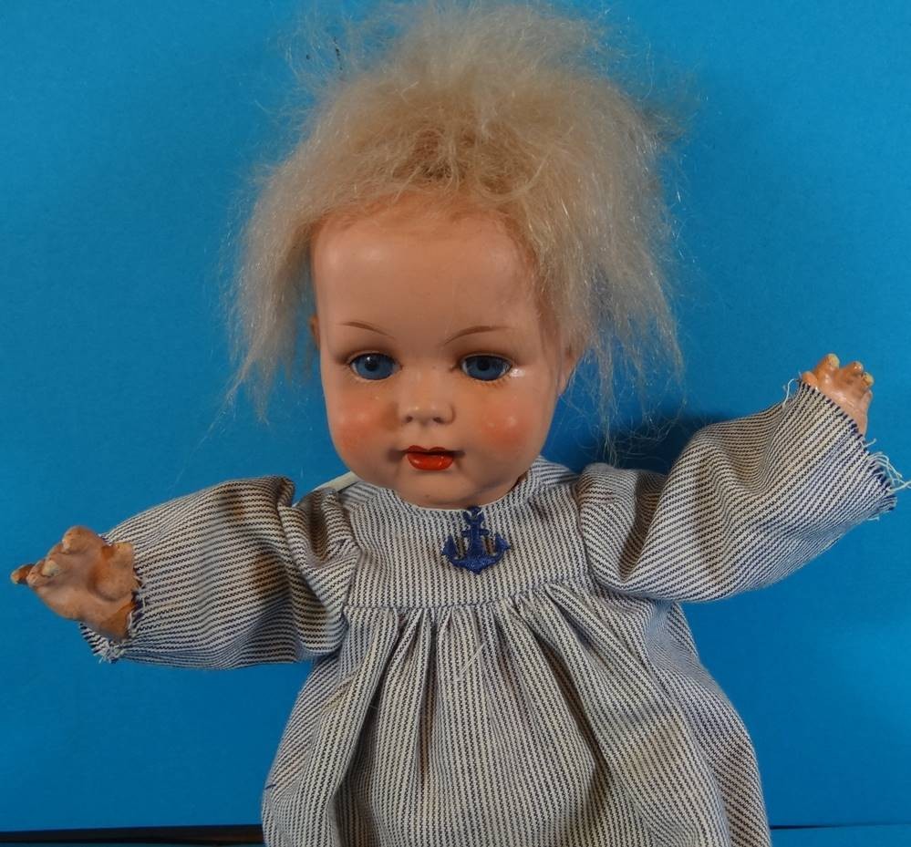 Massepuppe "König&Wernecke", Hände beschädigt, H-32 cm [1]