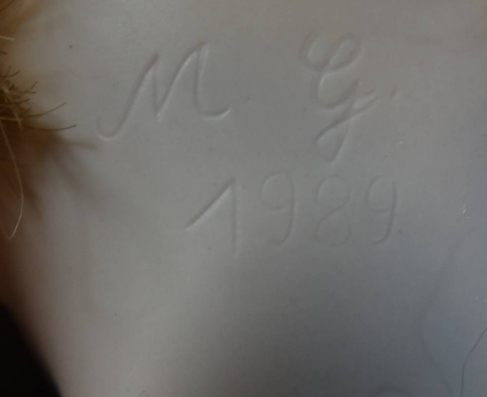 Porzellankopf-Mädchenpuupe, Halsmarke M.G. 1989, H-32 cm [1]