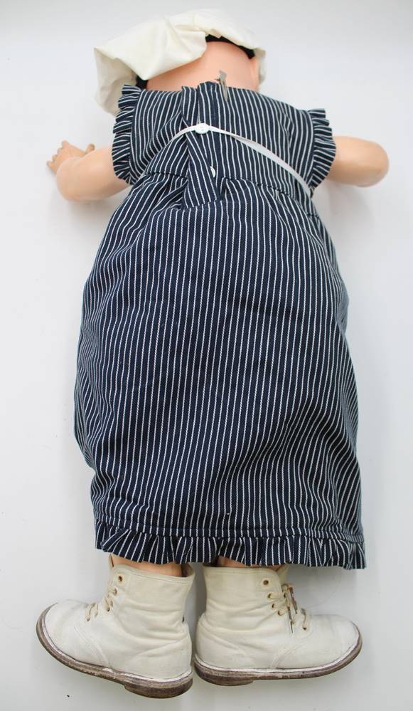 Puppe, Kämmer & Reinhardt, Masse, Schelmenaugen, offener Mund mit Zähnchen, Perücke aufgeklebt, Körper mit Altersspuren, H-66cm. [1]