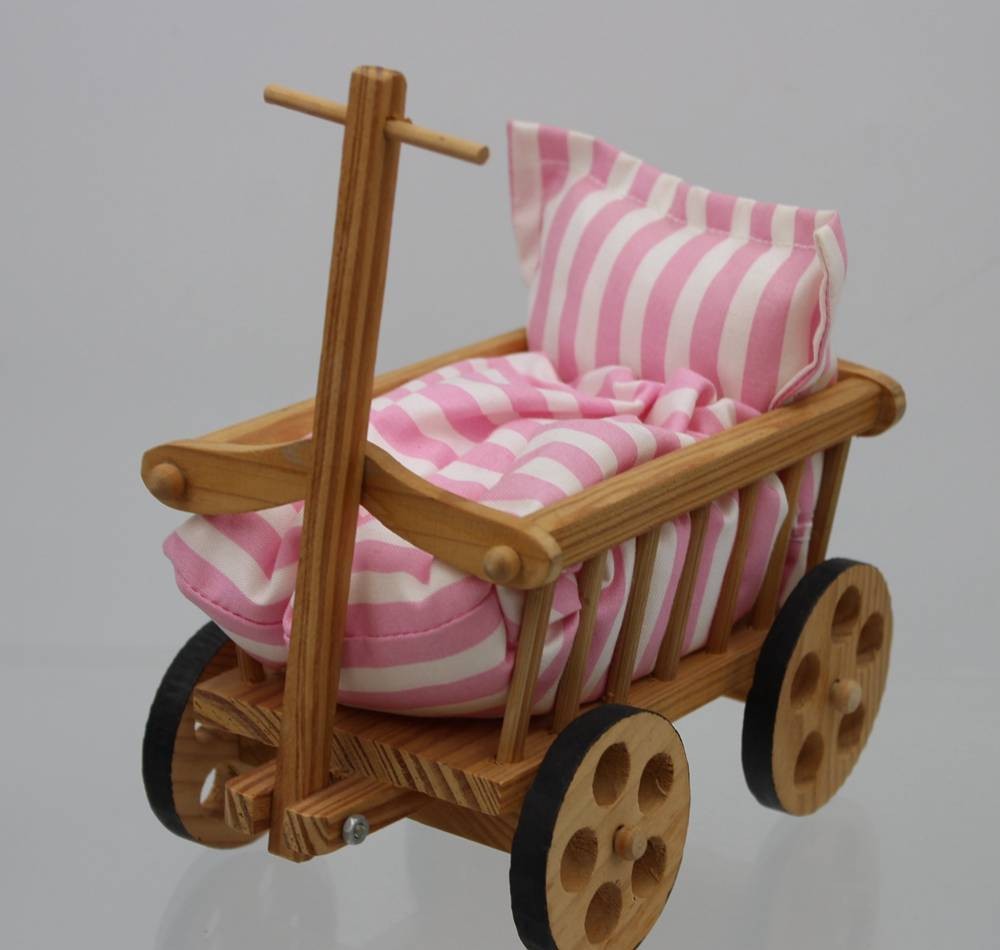 Puppen-Bollerwagen, Holz, H-10cm L-15cm B-10cm [1]