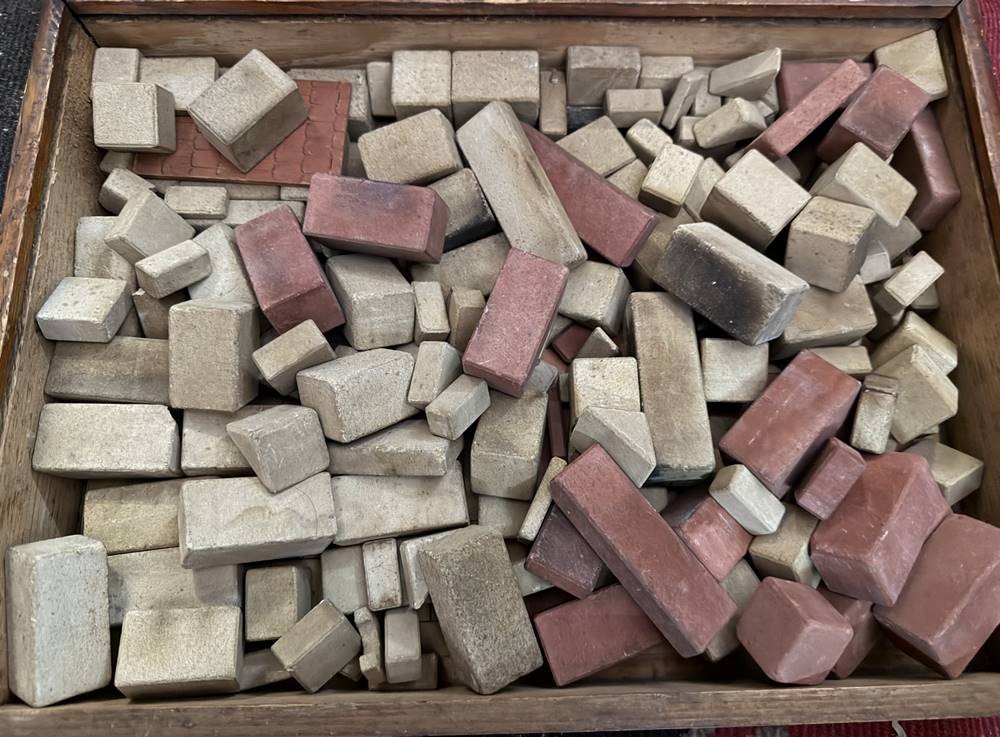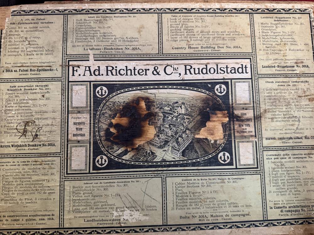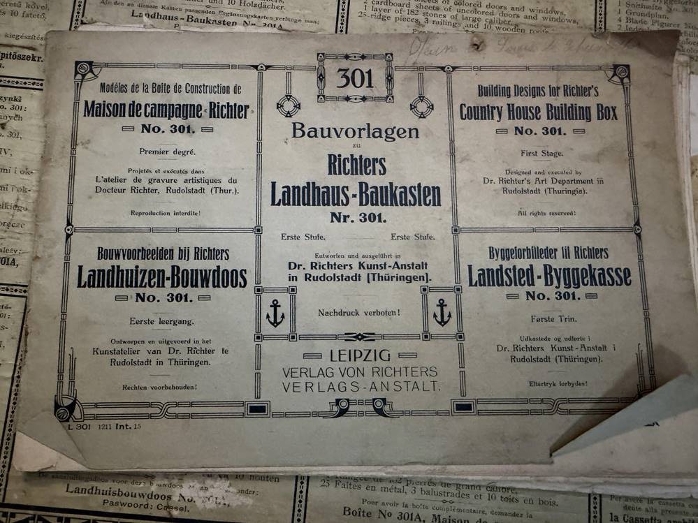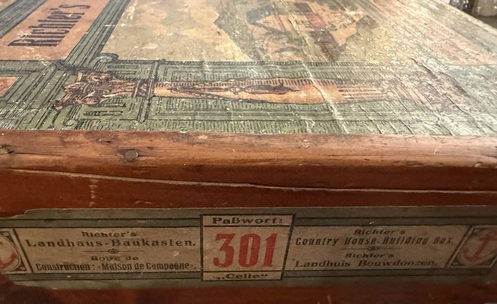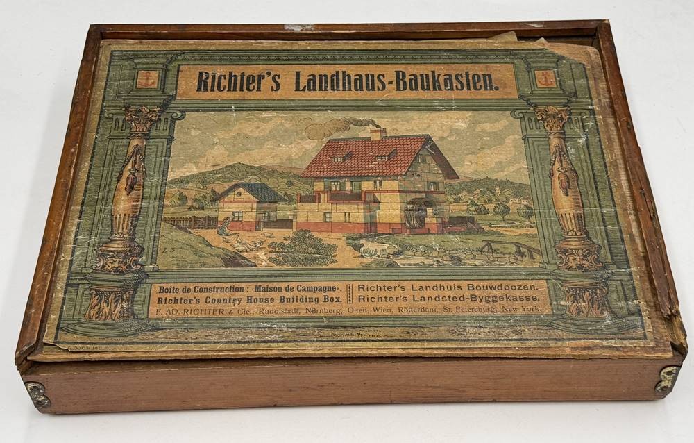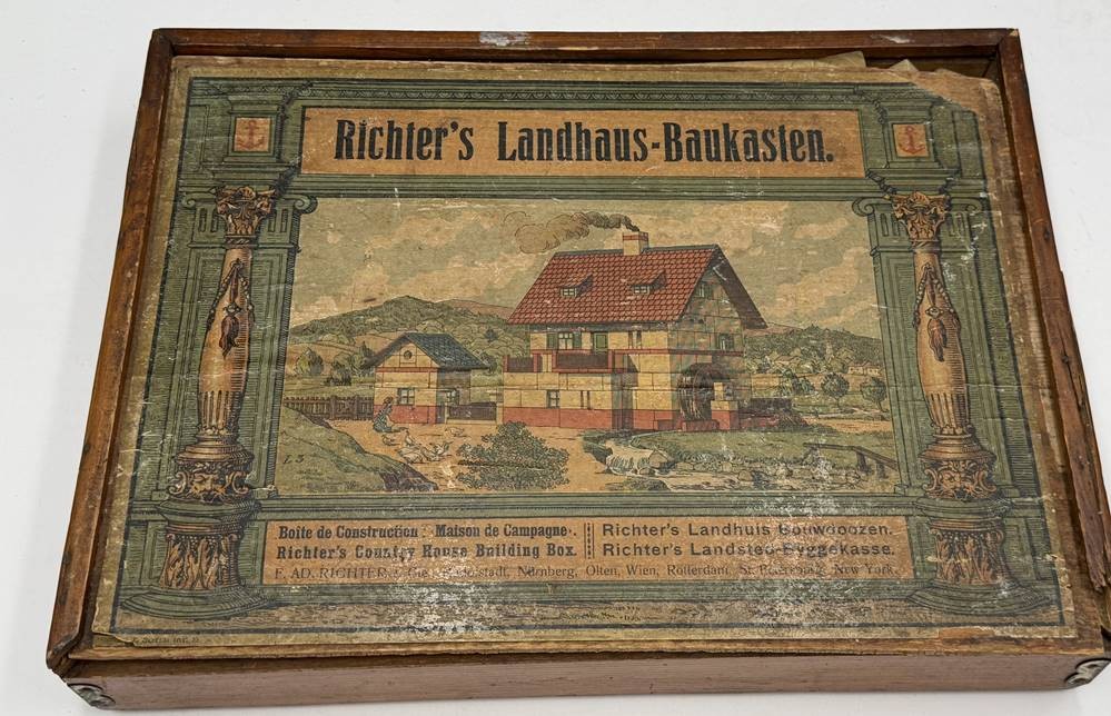 Richter's Landhaus Steinbaukasten, wohl komplett, mit Dach, Beschreibung, H-10 cm, 36x26 cm [1]