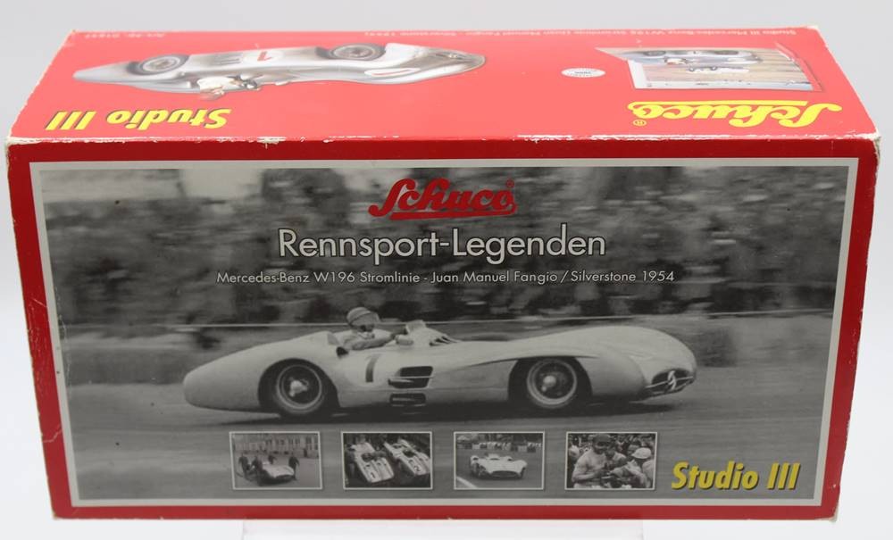 Schuco Studio III Mercedes-Benz W196 Stromlinie, orig. Karton, Schlüsselwerk läuft, bespielte Erhaltung, L- ca. 20,5cm. [1]