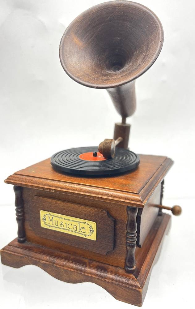 Spieluhr in Plattenspieler-Optik (Holz), H-16cm, B-10x10cm [1]