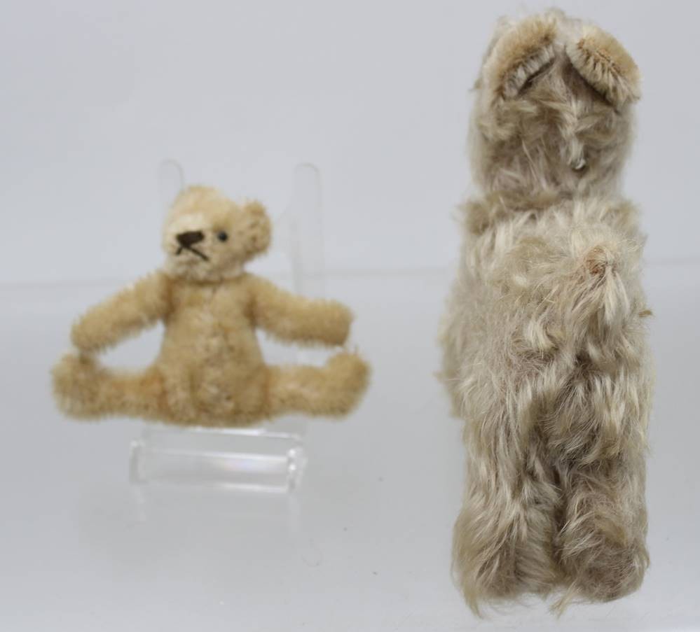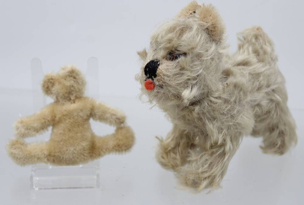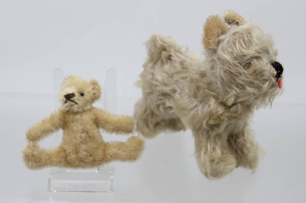 Steiff Hund Tessie und kl. Bär, Steiff ?, bespielter Erhaltung, ohne Ident., Hund H-12cm [1]