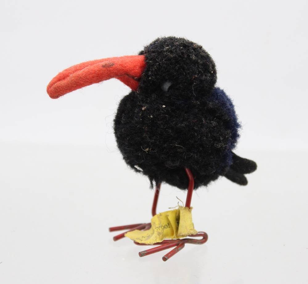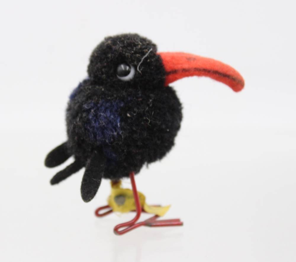 Steiff-Wollrabe, älter, Knopf u. Fahne, Drahtbeine, ca. H-7cm [1]