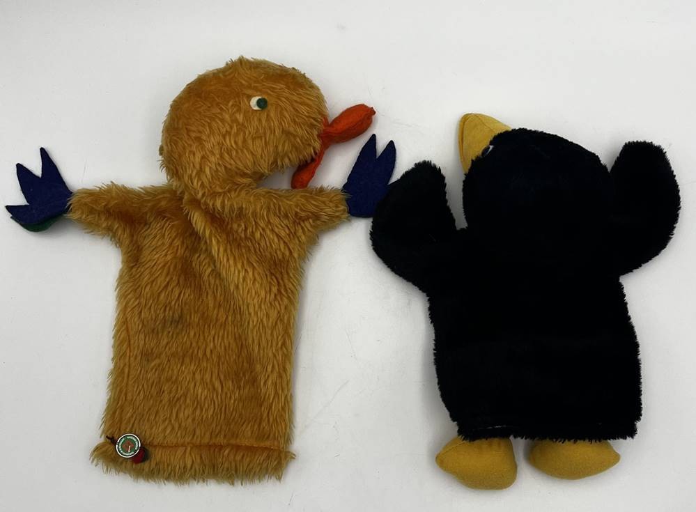 Stoff-Handpuppen, 1x Ente & 1x Rabe, H: 27cm & 22cm [1]