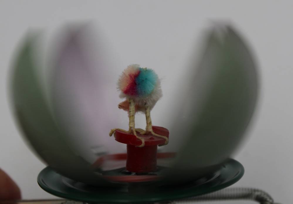 vintage Blechspielzeug, China, rotierendes Ei, innen Vogel, H-6 cm, L-11 cm [1]