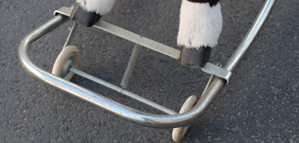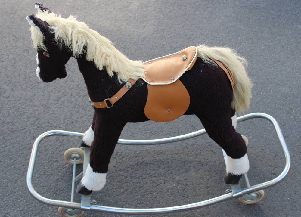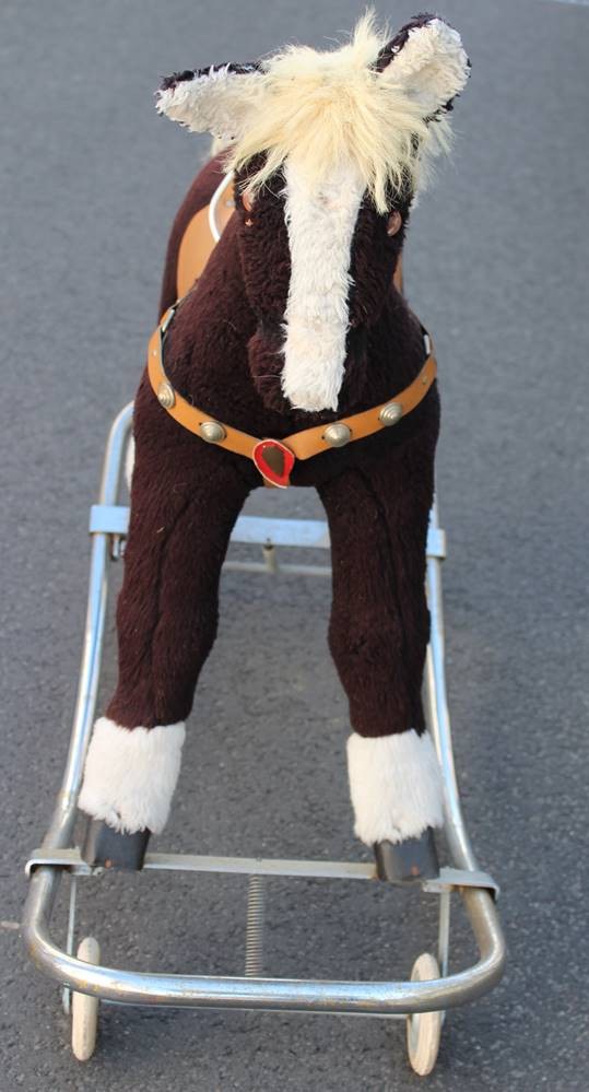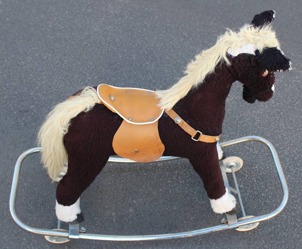 Vintage-Schaukelpferd aus Plüsch, wohl 60/70er Jahre, Metallgestell, ca. H-76cm B-88cm [1]