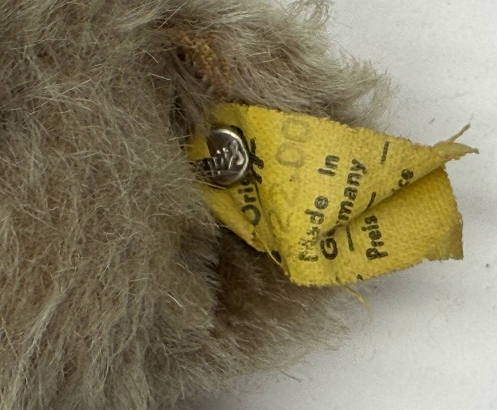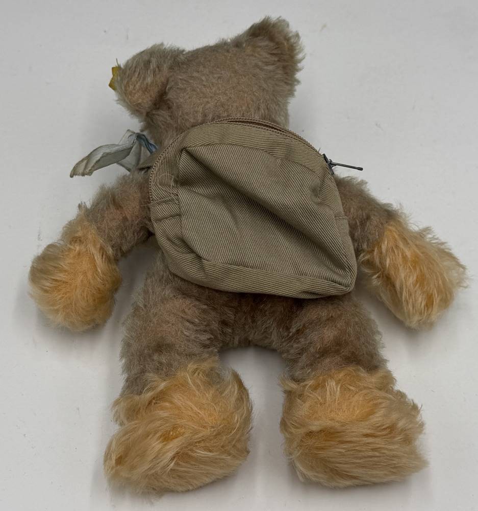 vintage Steiff Zotty, Knopf+Fahne, mit Rucksack, Nummer verwaschen, H-19 cm [1]