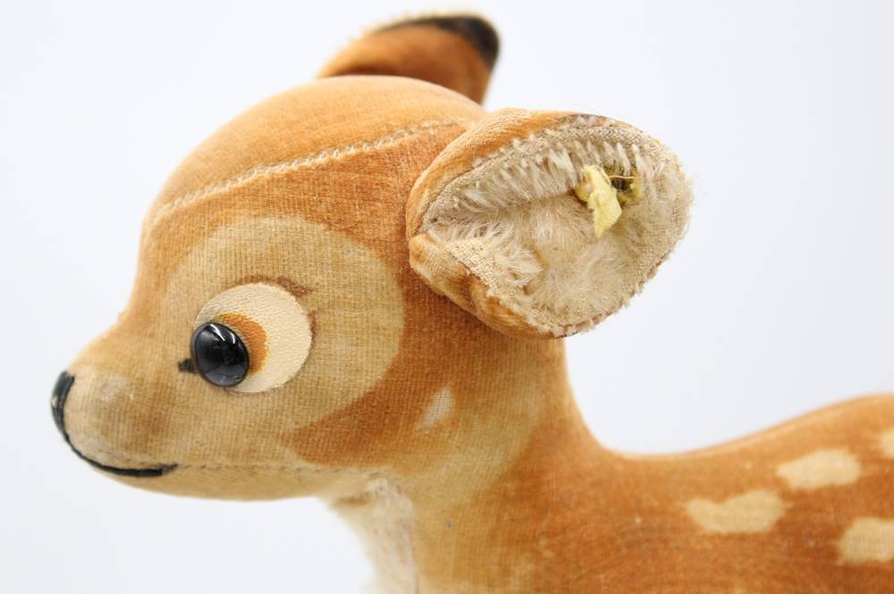 vintage Walt Disney Bambi von Steiff, Knopf und Restfahne, Samt, H-ca. 23 cm [1]