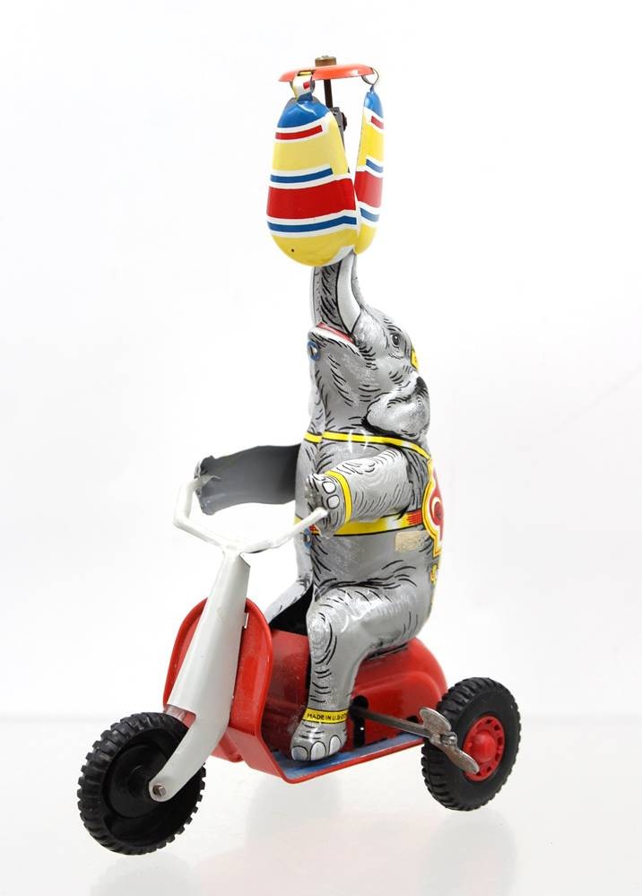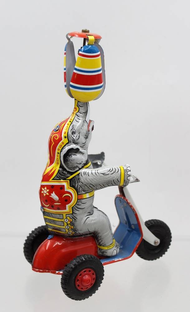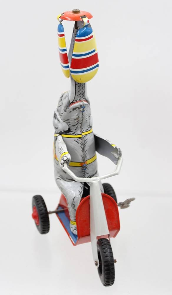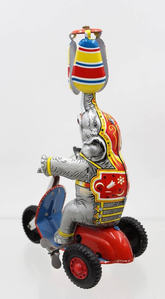 Zirkuselefant auf Dreirad, neuzeitl. , Schlüsselwerk defekt, ca. H-21cm [1]