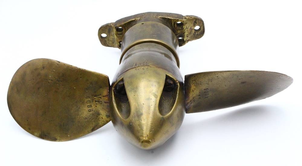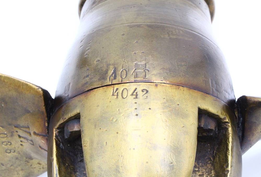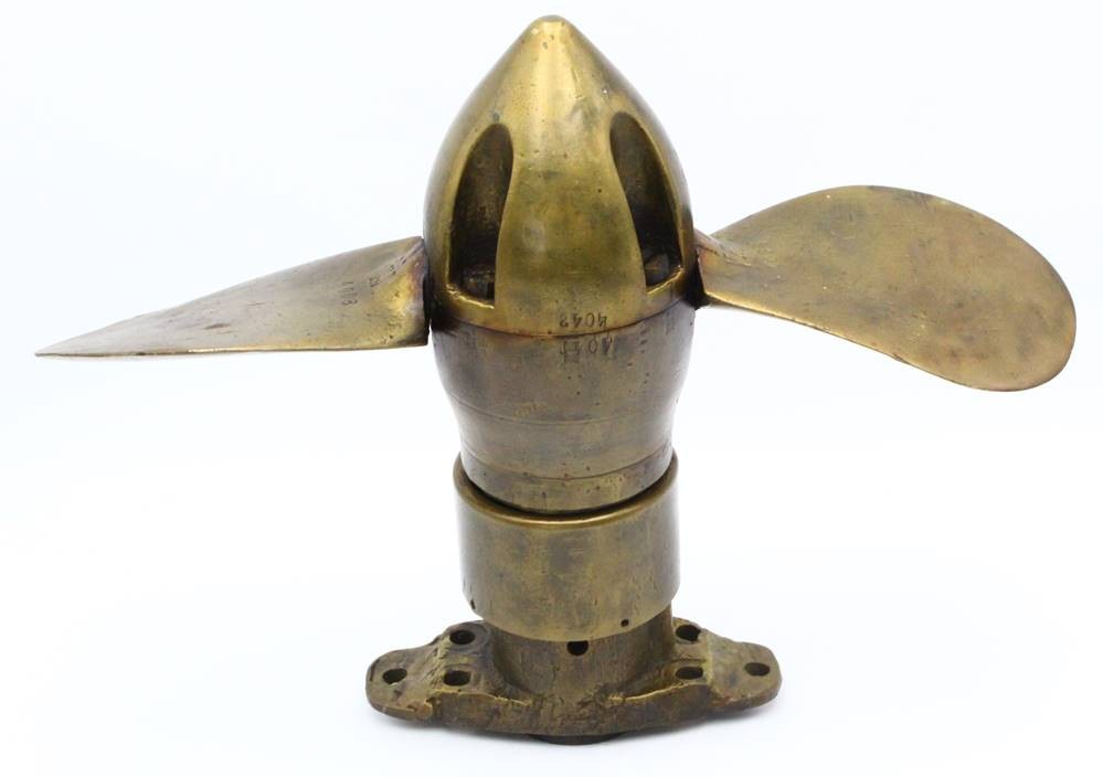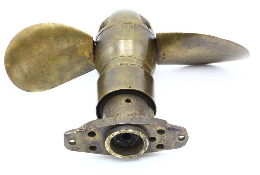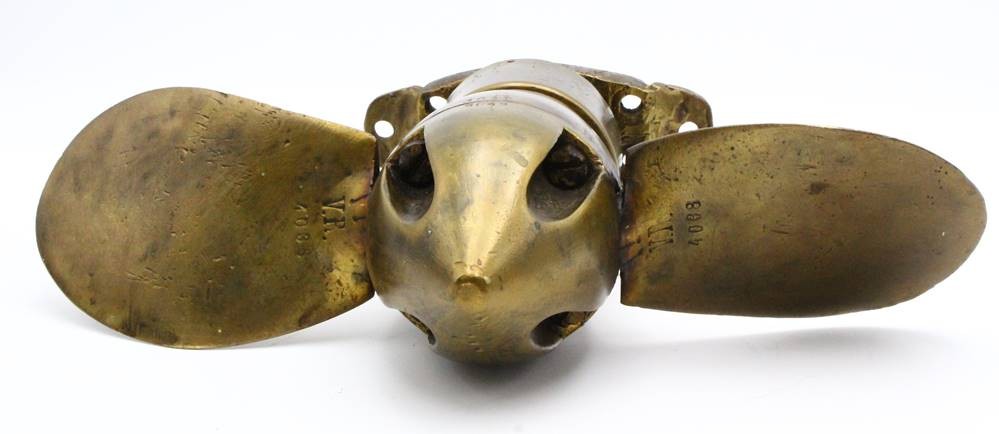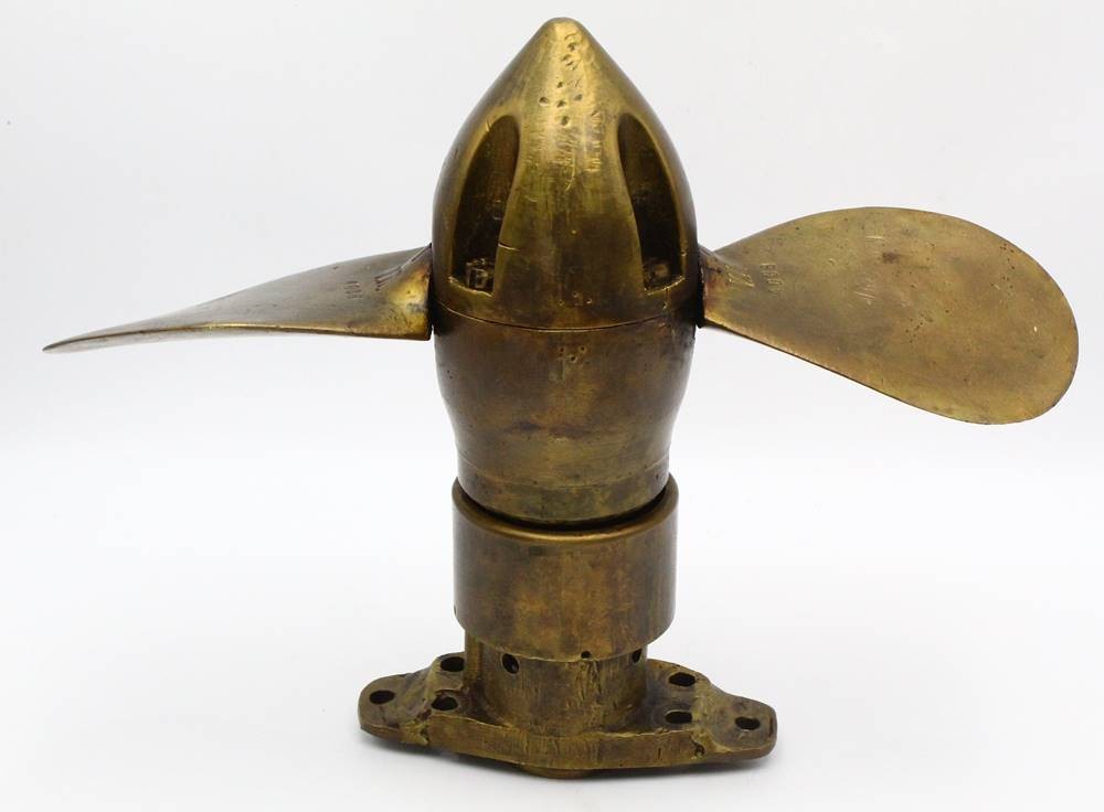 2 flügeliger Schiffspropeller, massiv Messing, div. Nummern, Alter?, Flügel lassen sich verstellen, 15 kg., B-41 cm, H-31 cm [1]