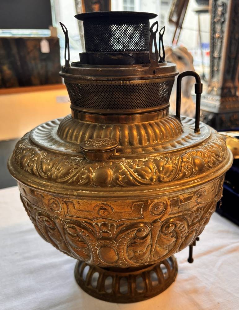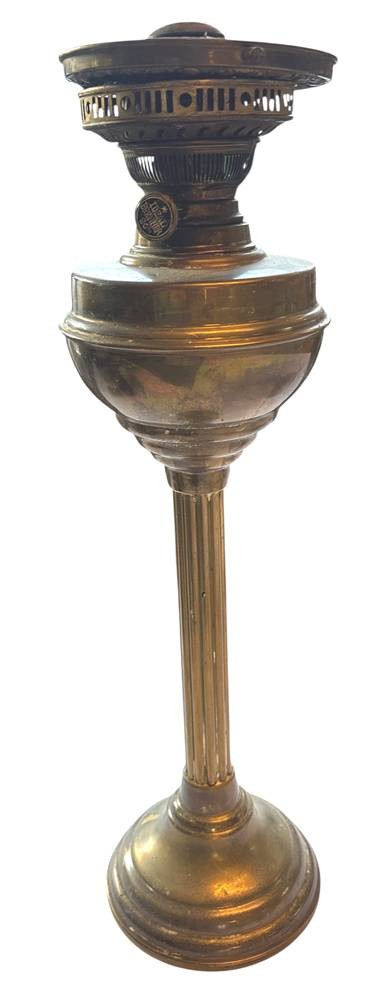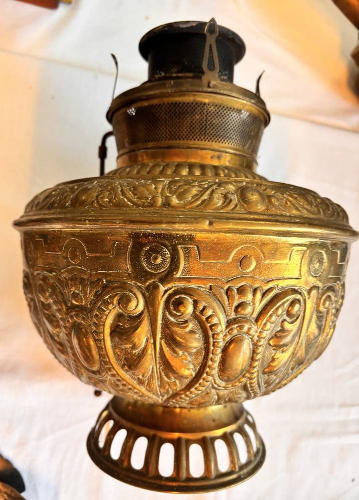 2x antike Lampen,Stand einer grossen Petroleumlampe, H-52 cm, und nur Brennerteil "Rochester" viktorianisch, H-28 cm [1]
