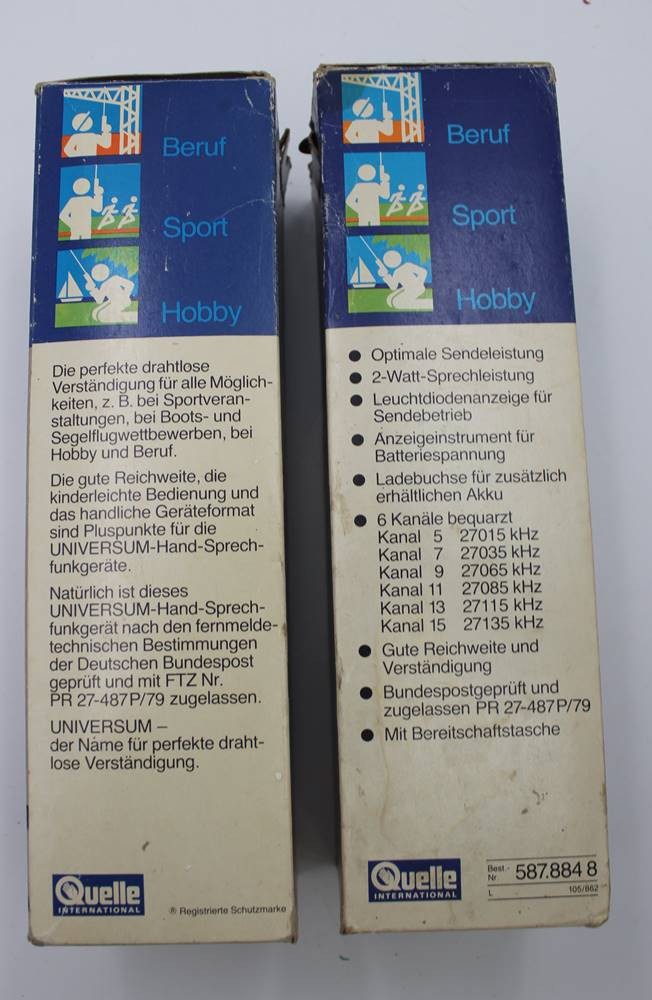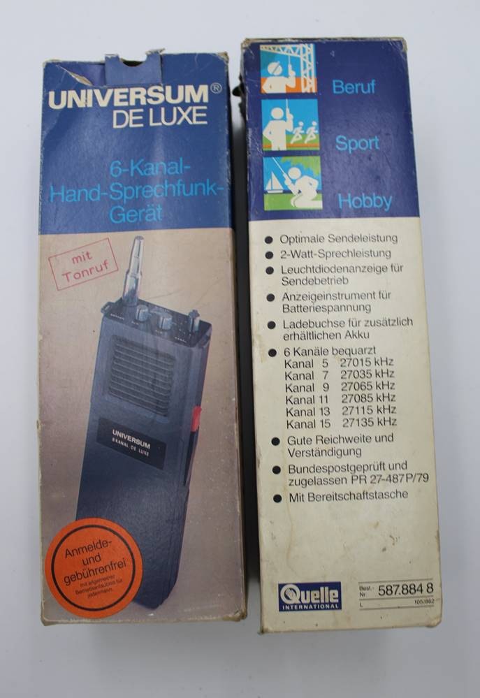 2x Funkgeräte, Universum DeLuxe, orig. Karton, 6 Kanal, laut Einlieferer funktionstüchtig, ohne Ladekabel