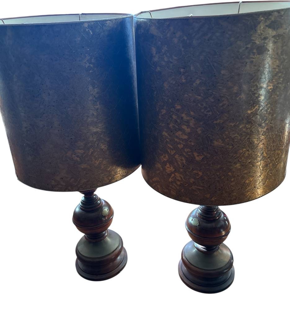 2x grosse Tischlampen mit Holzstand, H-ca. 60 cm [1]