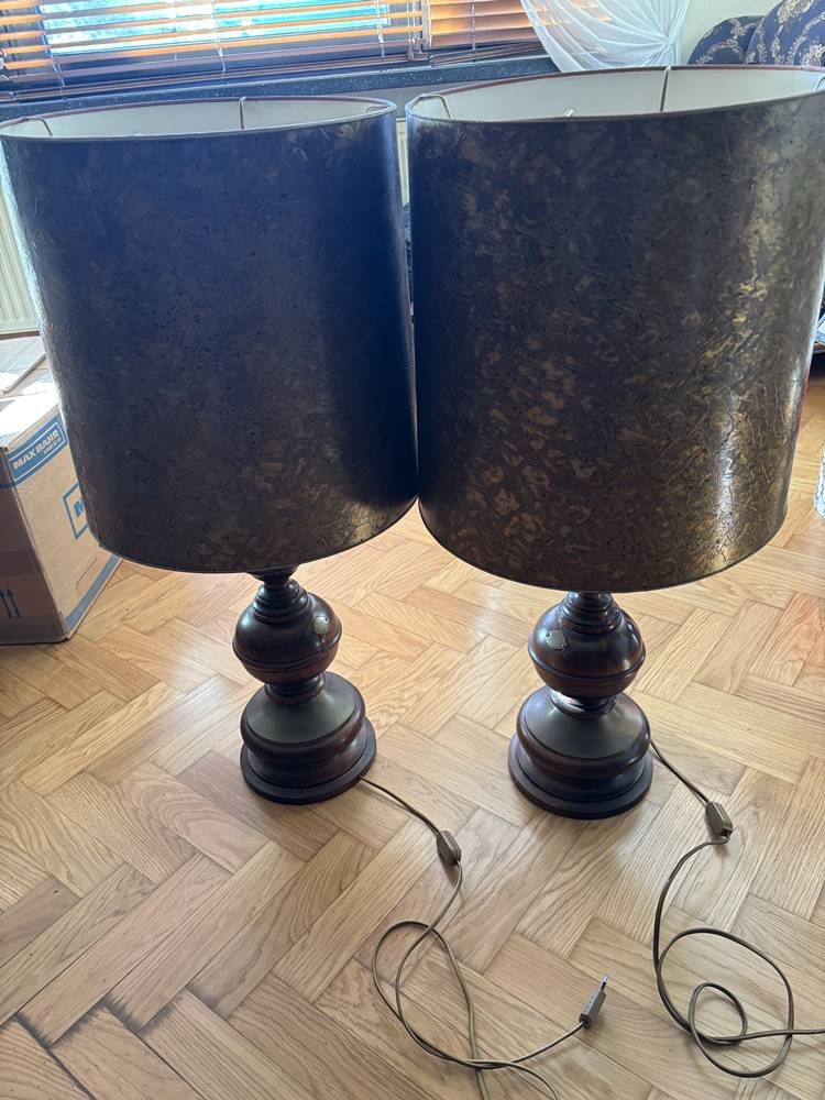2x grosse Tischlampen mit Holzstand, H-ca. 60 cm
