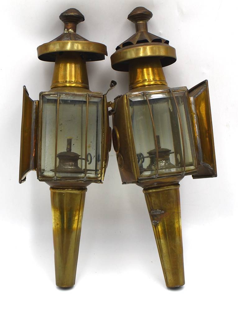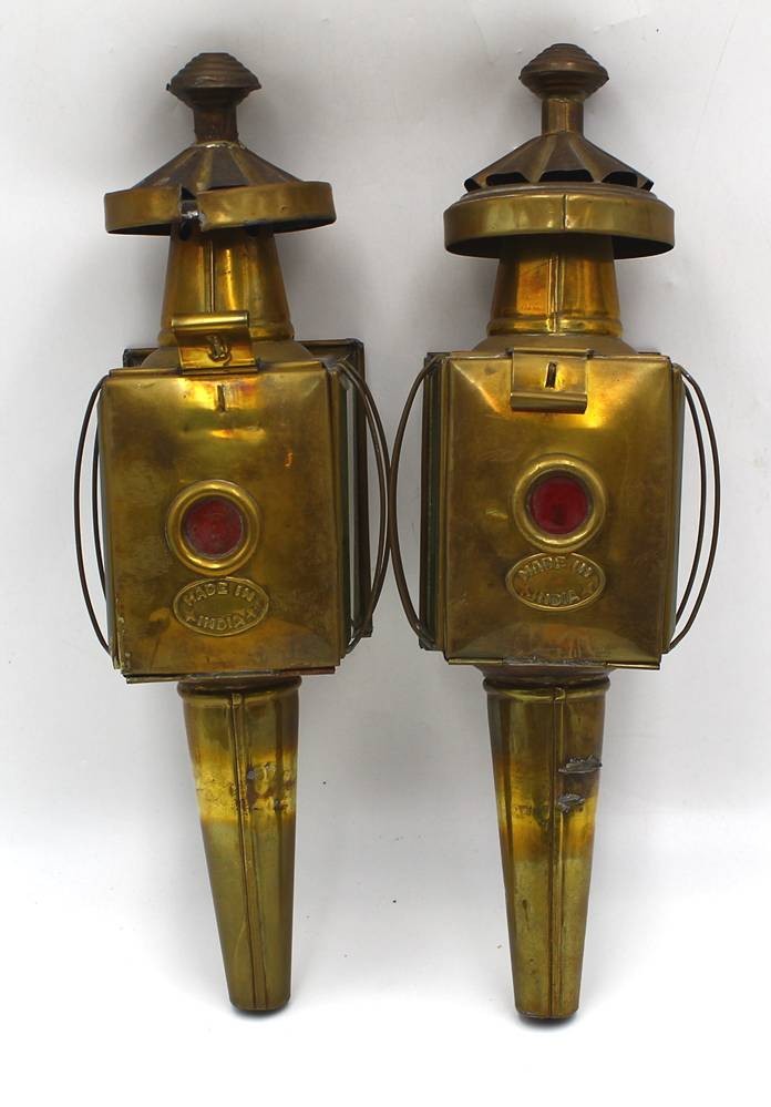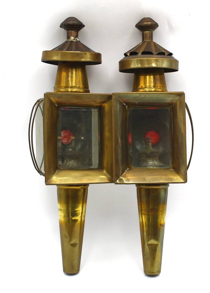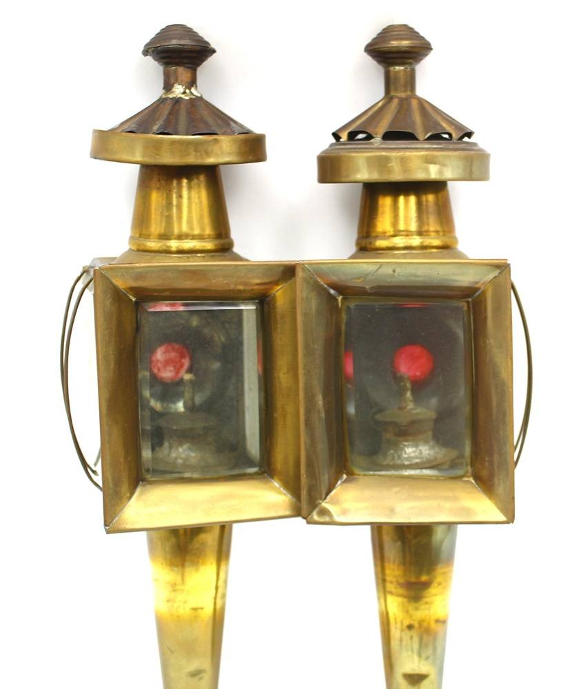 2x Messing-Wagenlampen, Petroleum, H-36 cm, Gebrauchsspuren [1]