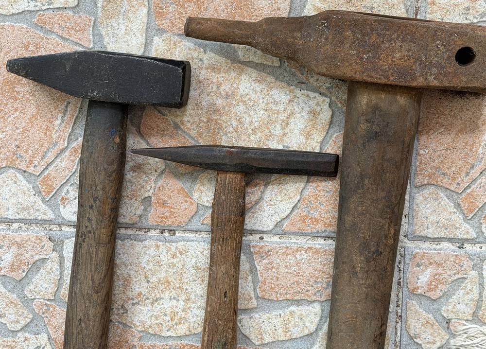 3x antike, handgefertigte Hämmer, L-max. 44 cm