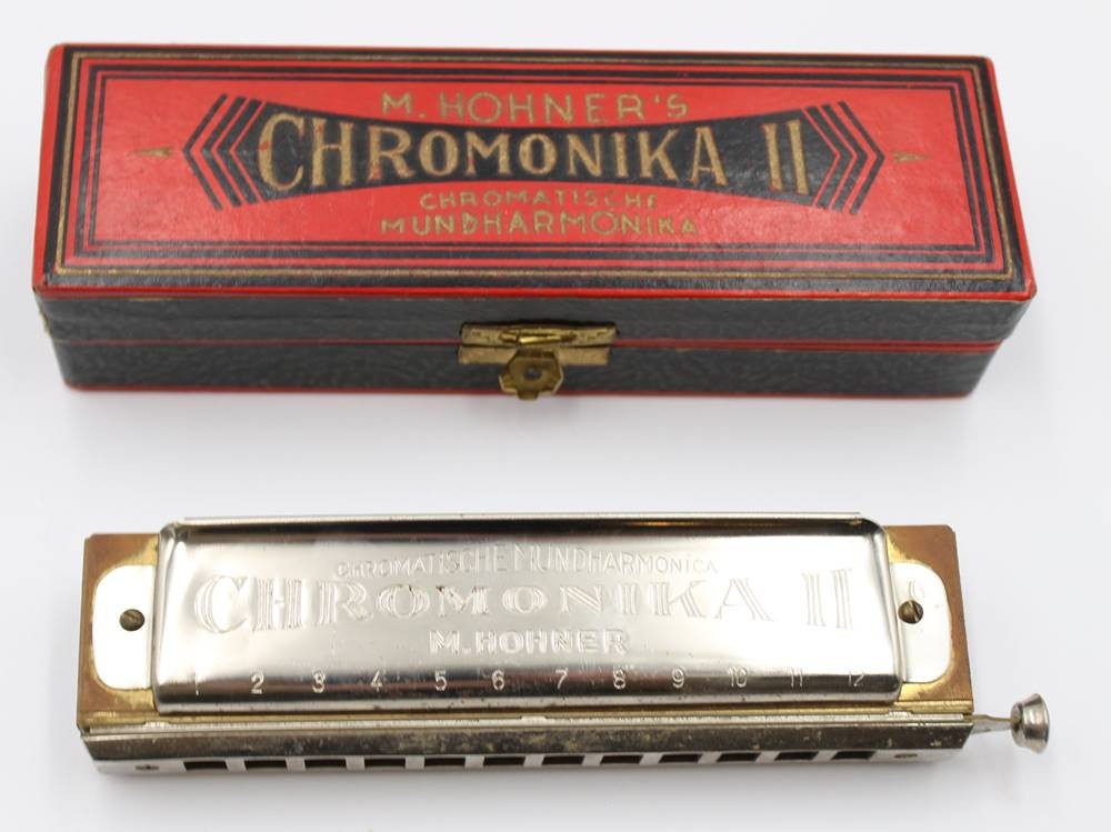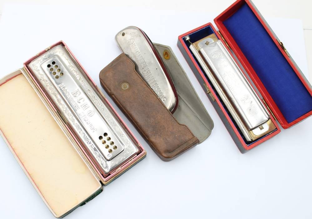3x div. Mundharmonikas, Hohner, Chromonika II, Echo und Contessa, Gebrauchsspuren [1]