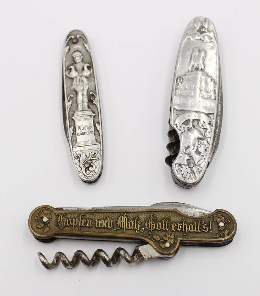 3x div. Taschenmesser, um 1900, je Reliefdekor, ca. L-12cm [1]