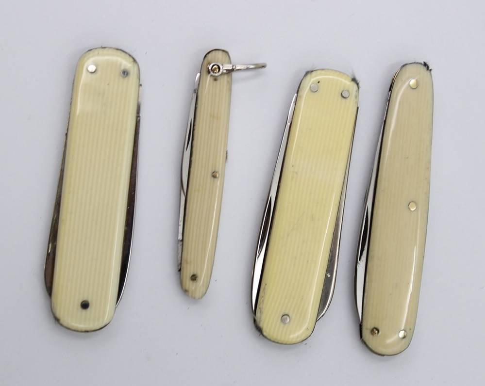 4x div. ältere kl. Taschenmesser, Bakelitgriffschalen, ca. L-14cm