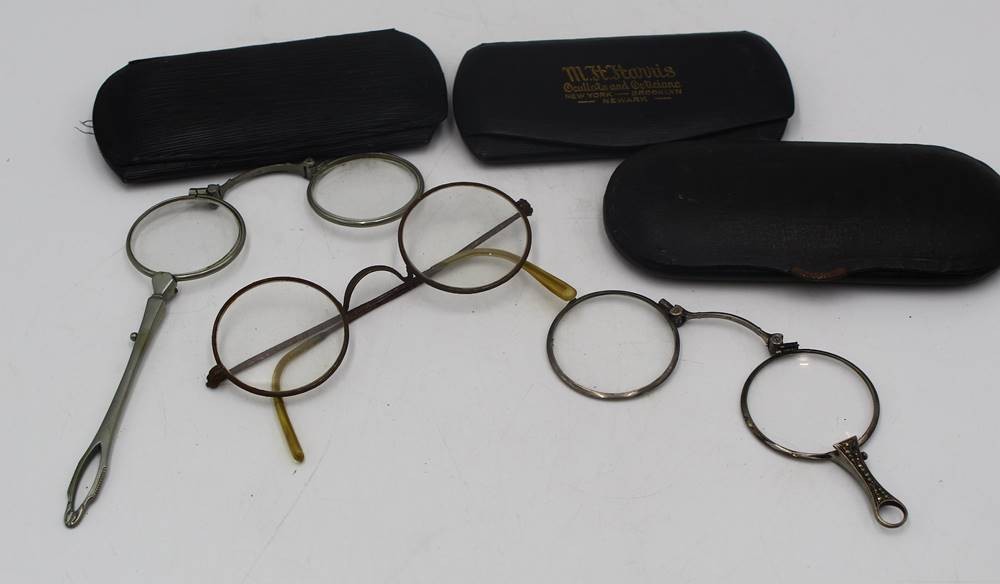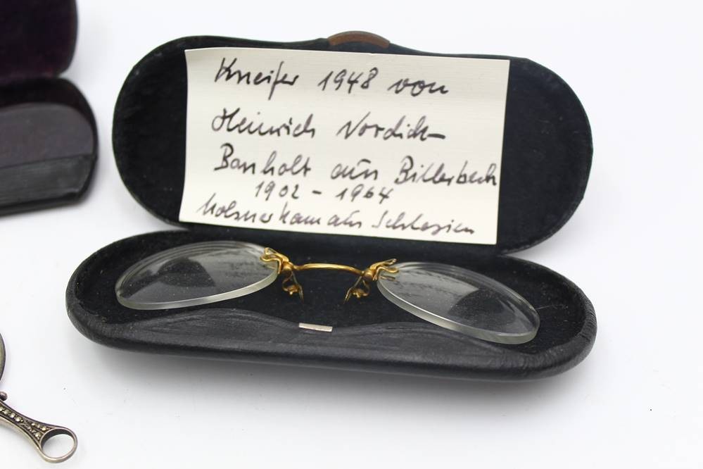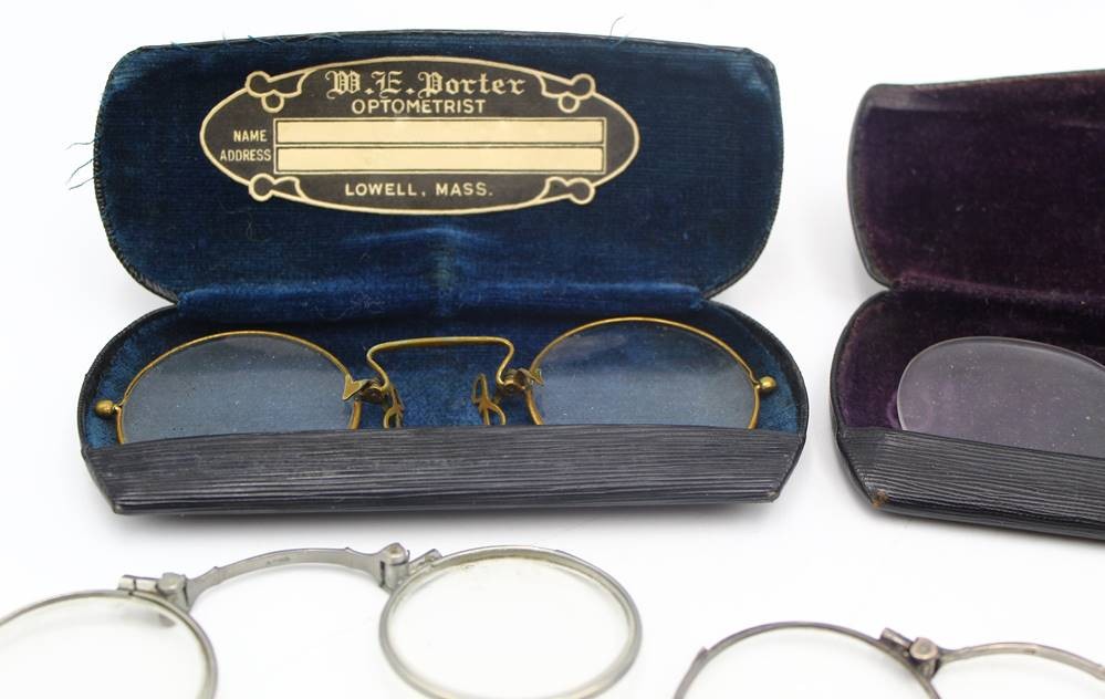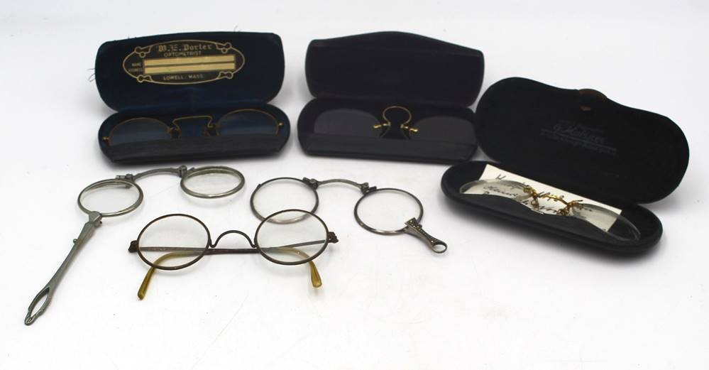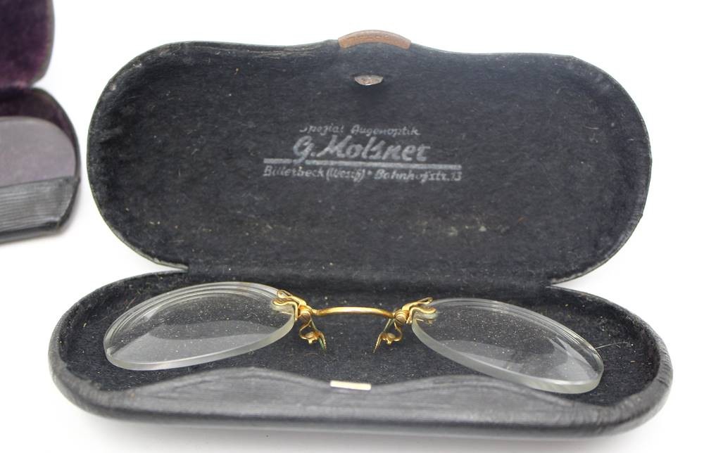 6x alte Nasenkneifer, Lorgnon etc., tw. mit Etuis [1]