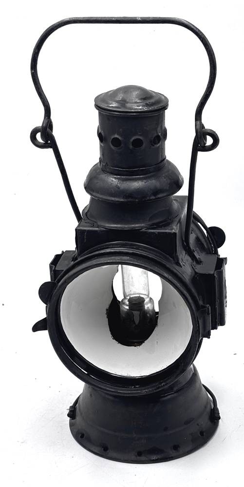 alte Eisenbahner Signallampe, Blech, Petroleum, ein Las fehlt, H- mit Bügel cm [1]