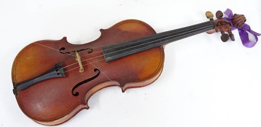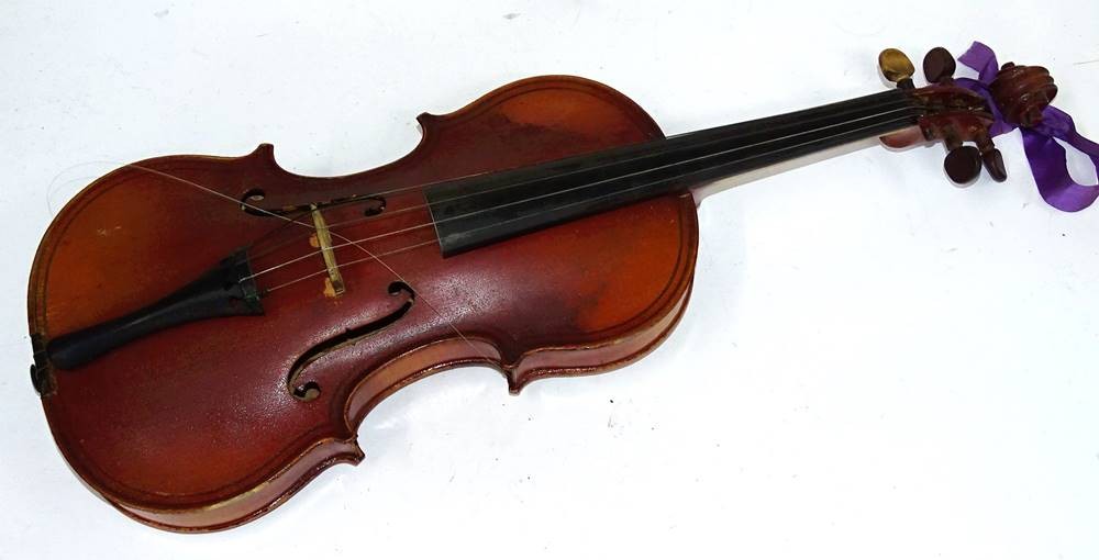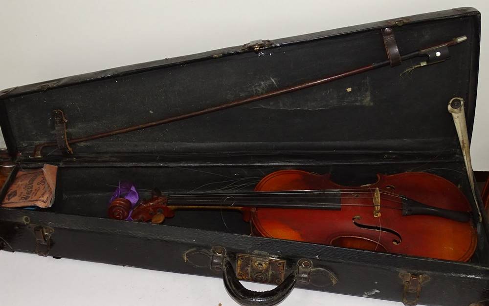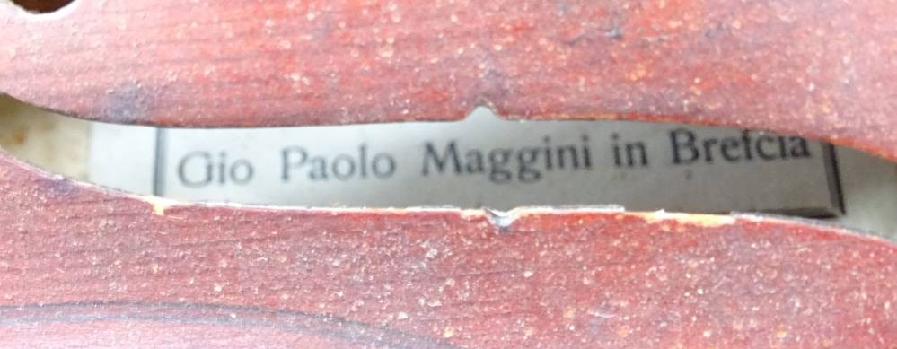 Alte Geige im Koffer, Etikett Gio Paolo Maggini in Brefcia, made in France, L.60cm, Alters- und Gebrauchsspuren [1]