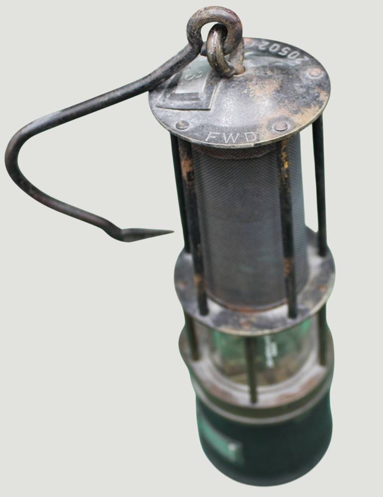 alte Grubenlampe, Metall, mit Haken, H-31 cm