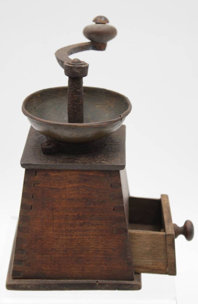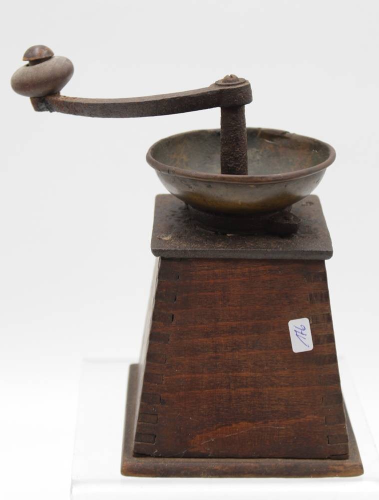 alte Kaffeemühle, Holzgehäuse, Altersspuren, H-19cm. [1]