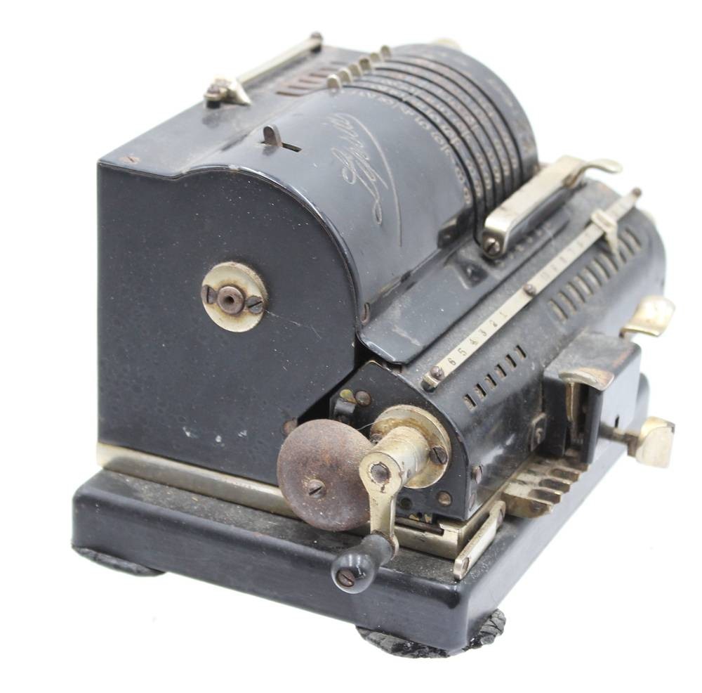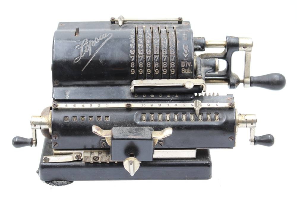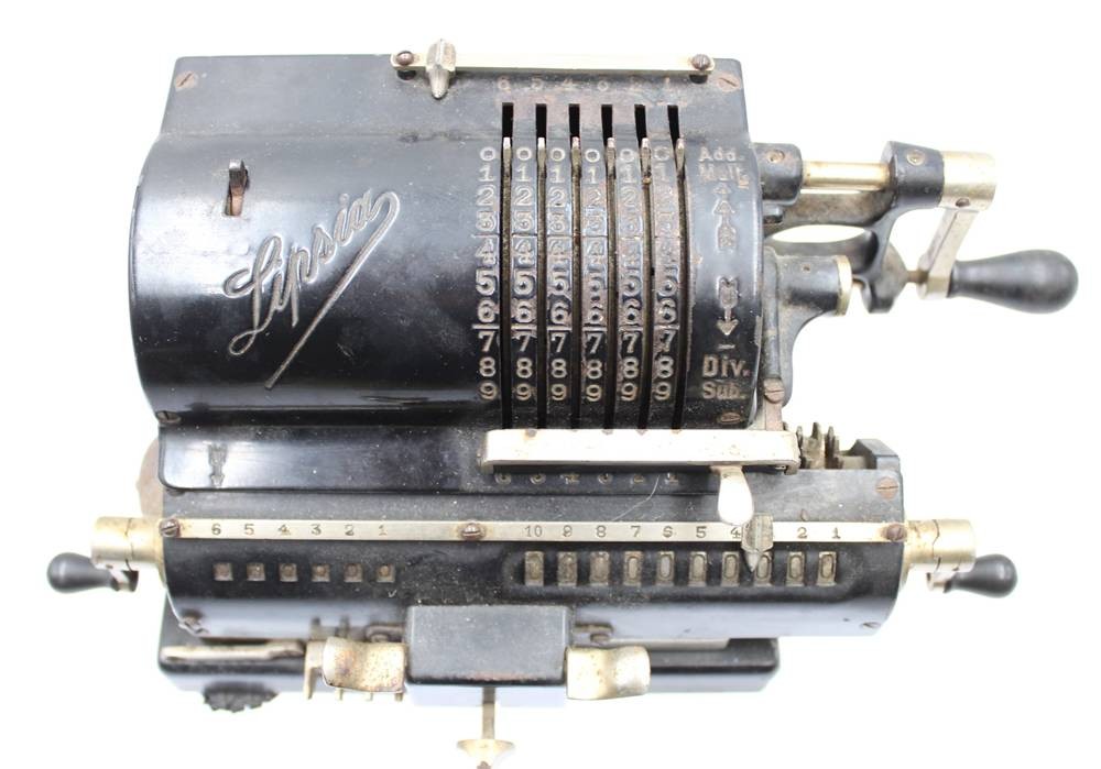 alte Rechenmaschine, Lipsia, Alters.u. Gebrauchsspuren, Funktion nicht geprüft, ca. H-11cm B-24,5cm [1]