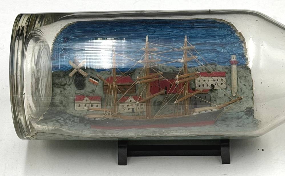 altes Buddelschiff mit Diorama, DR-Fahne, L-29 cm [1]