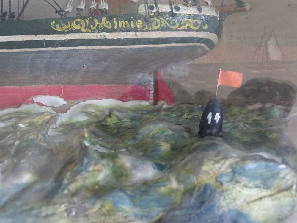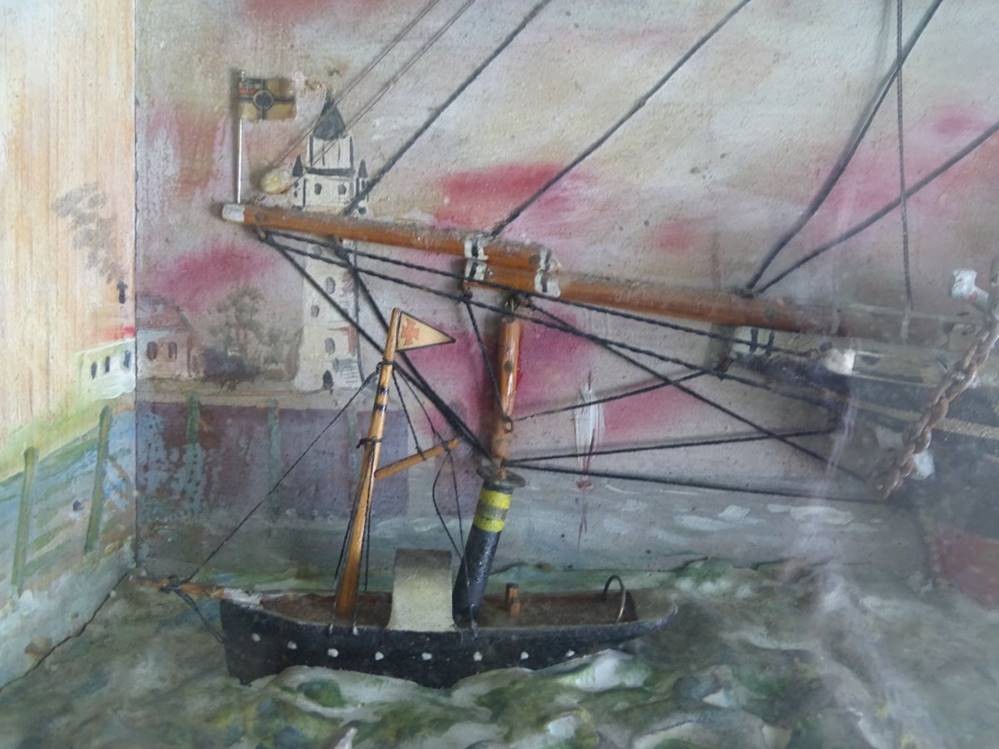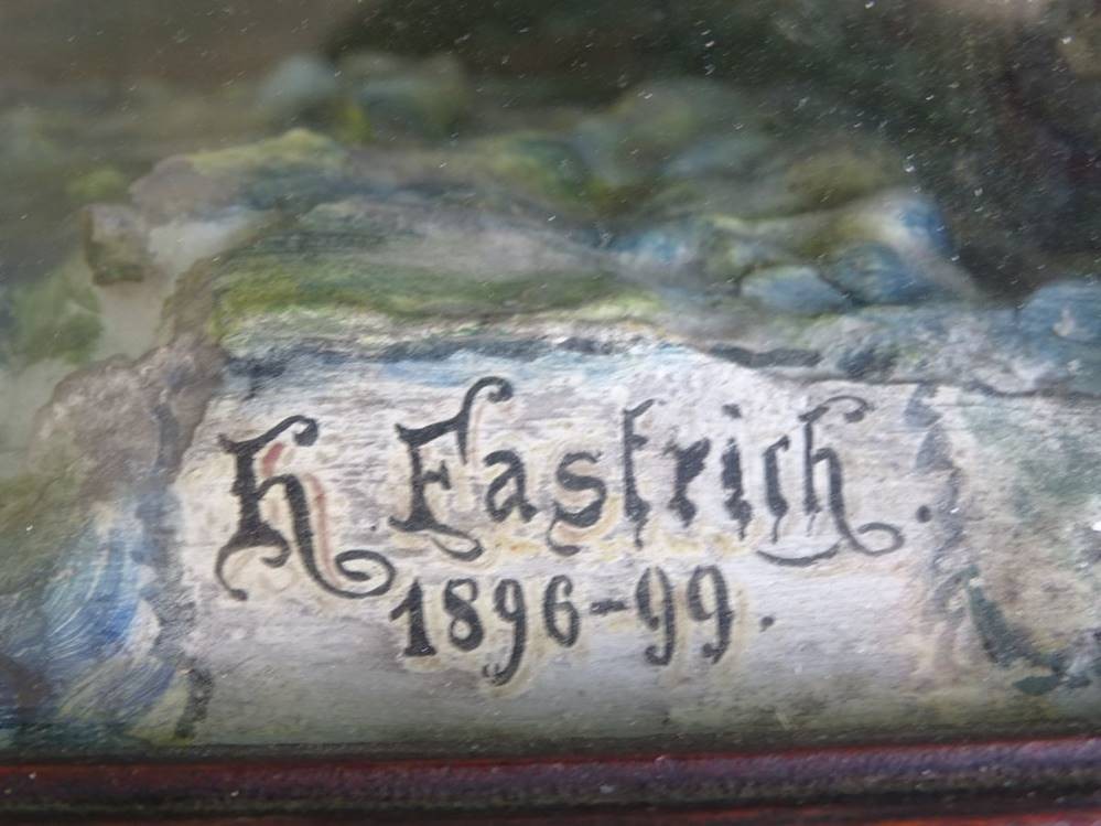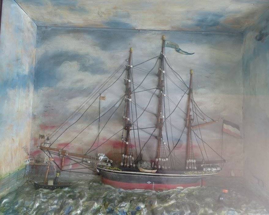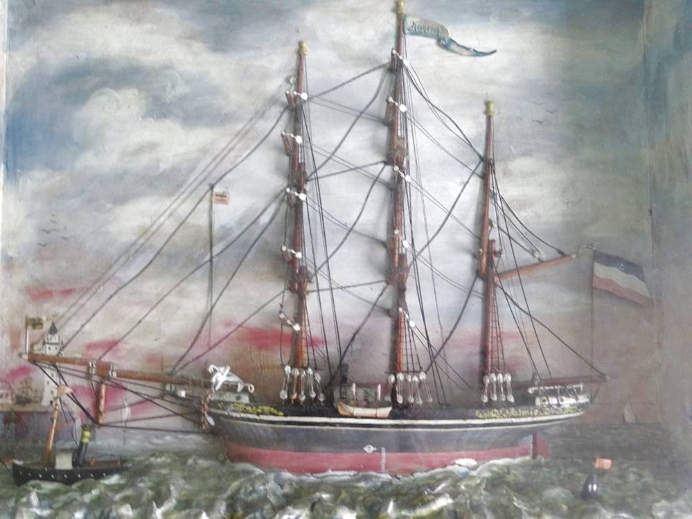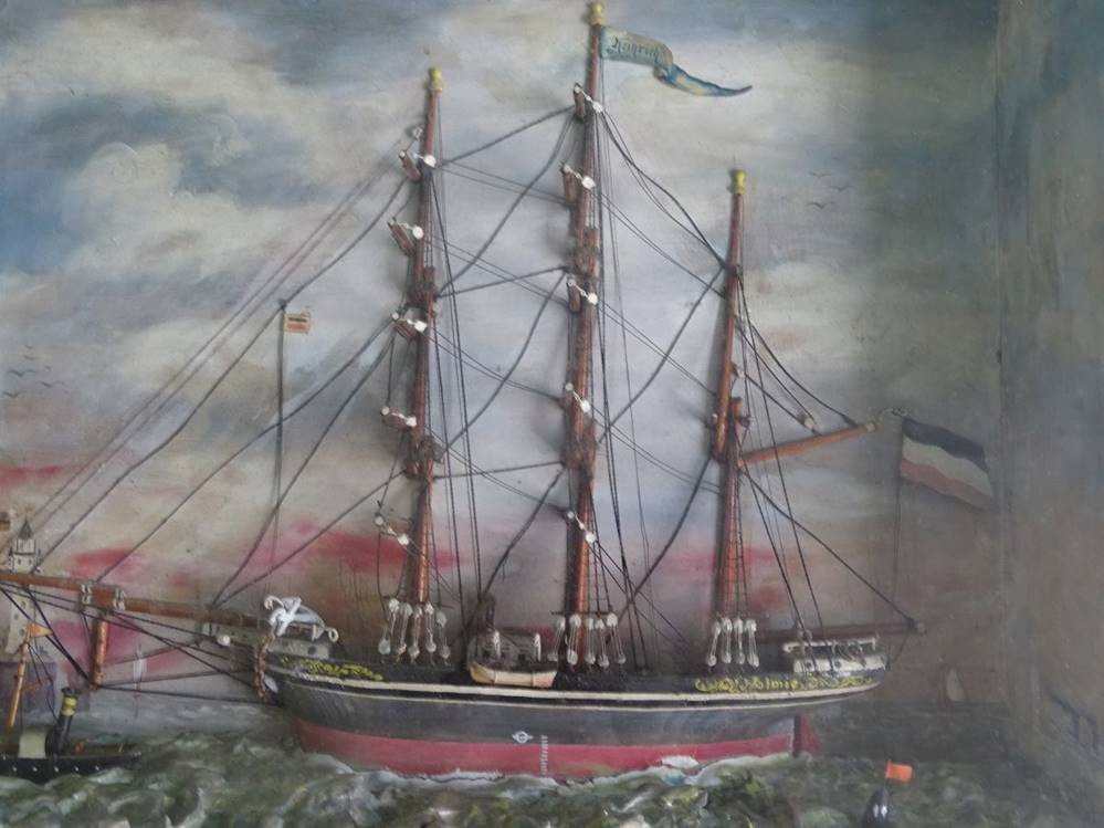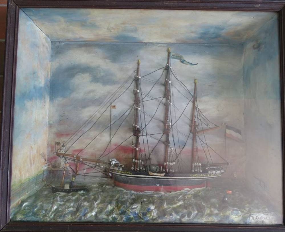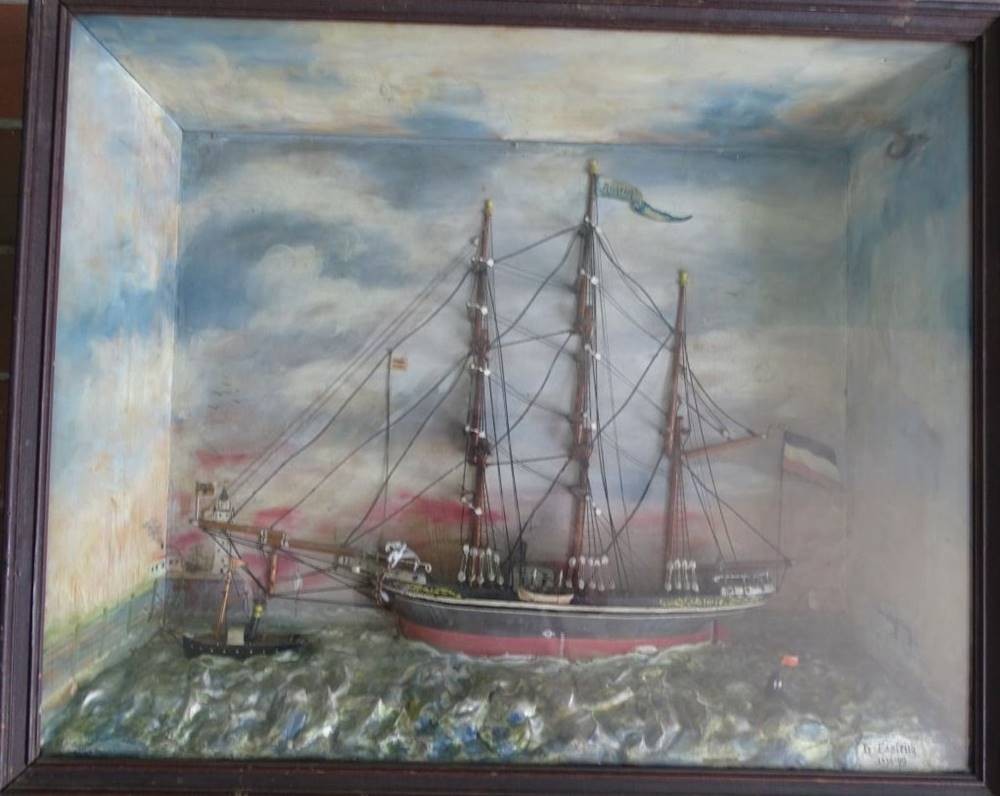 altes Halbmodell eines Segelschiffes in Wandvitrine, signiert H. Fastrich 1896-99, 53x65x13 cm [1]