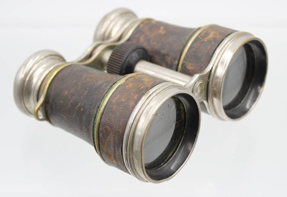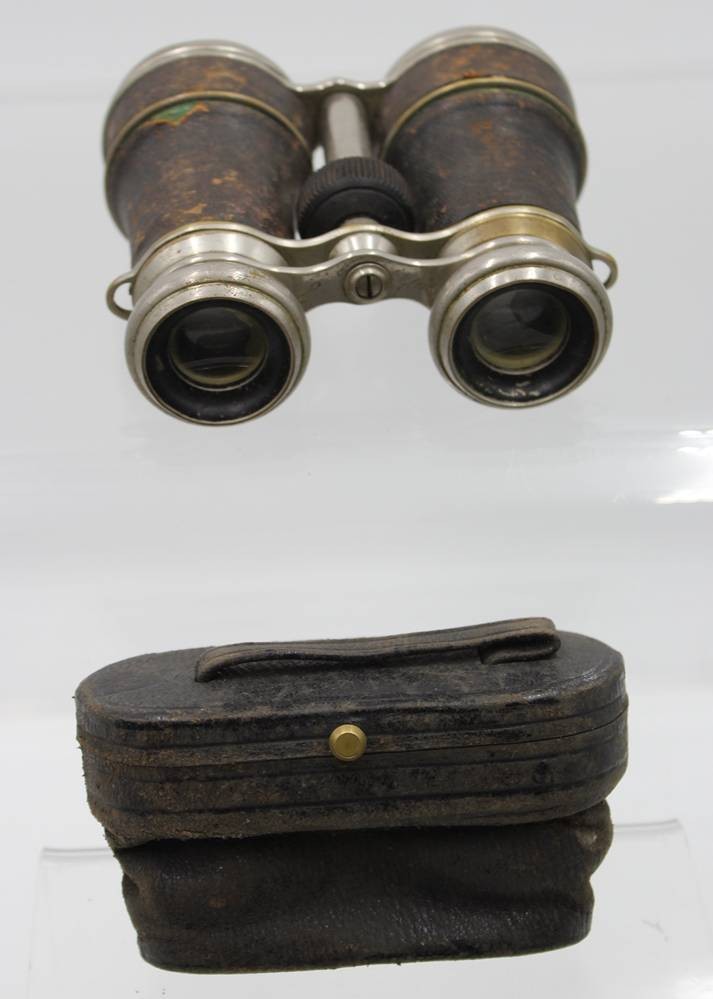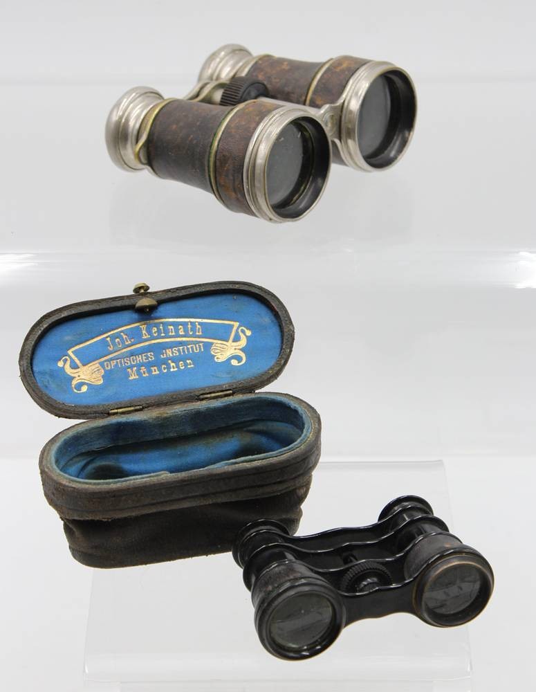 altes Opernglas in Leder-Etui, München, anbei kl. altes Fernglas dieses Beschädigt (Mittelsteg fehlt) [1]