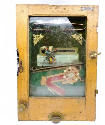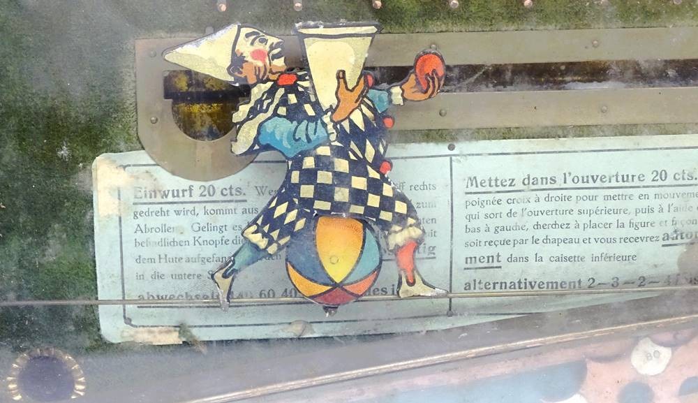 Antiker Spielautomat aus dem Hause " Bajazzo " Glas Defekt Schlüssel vorhanden Schloss Defekt Maße : 59,5 x 41,5 cm nicht Spielbereit ! [1]