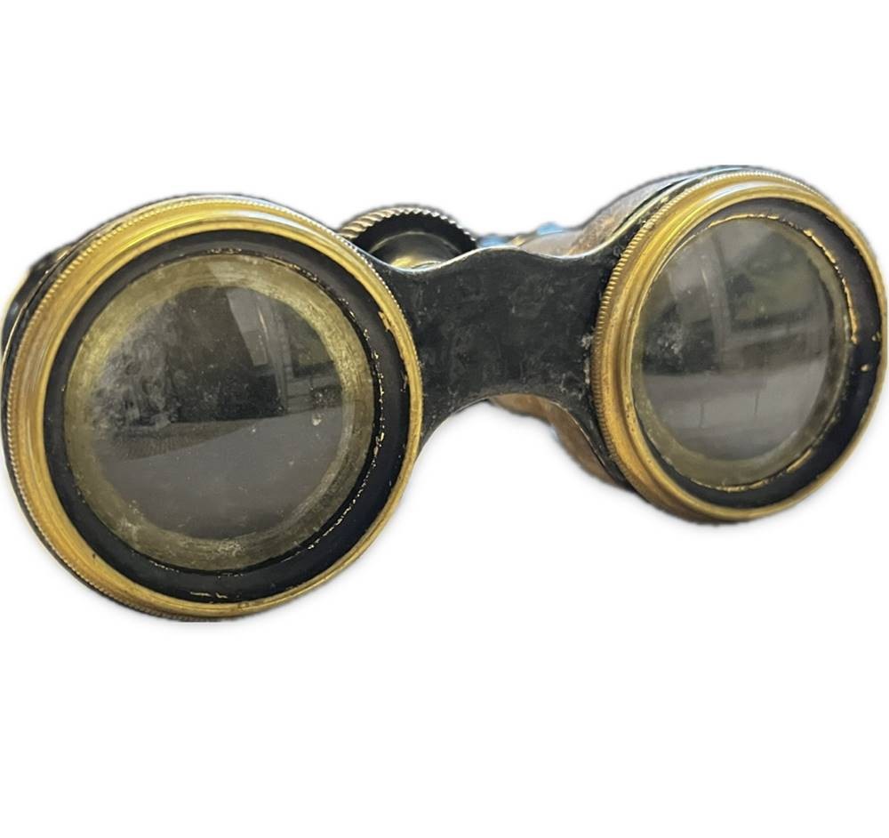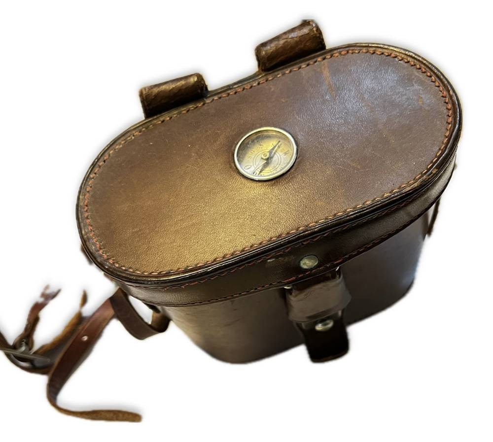 Antikes (Militär-)Fernglas von Otto Schleiffelder, 1. Graben No.22, Wien, in Tasche m. Kompass, Funktion nicht geprüft, Alters & Gebrauchsspuren [1]