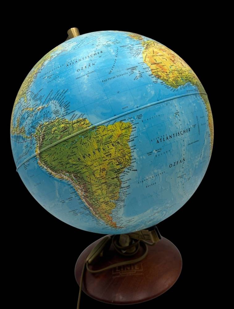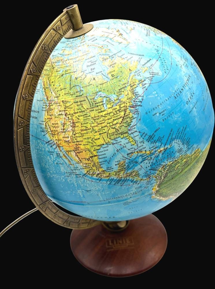 beleuchtbarer Globus, Holzstand mit "Linie Aquavit" Werbung, H-40 cm