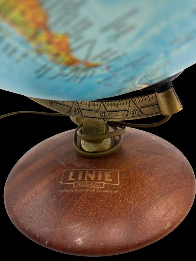 beleuchtbarer Globus, Holzstand mit "Linie Aquavit" Werbung, H-40 cm [1]