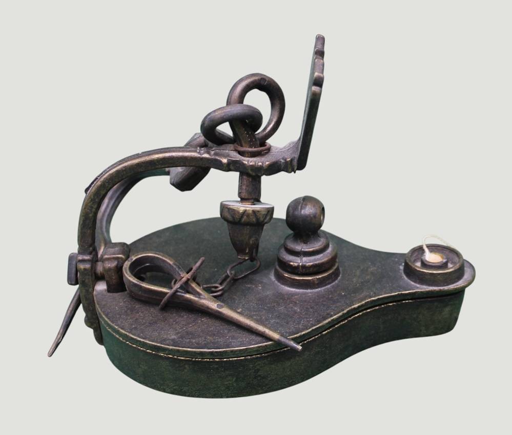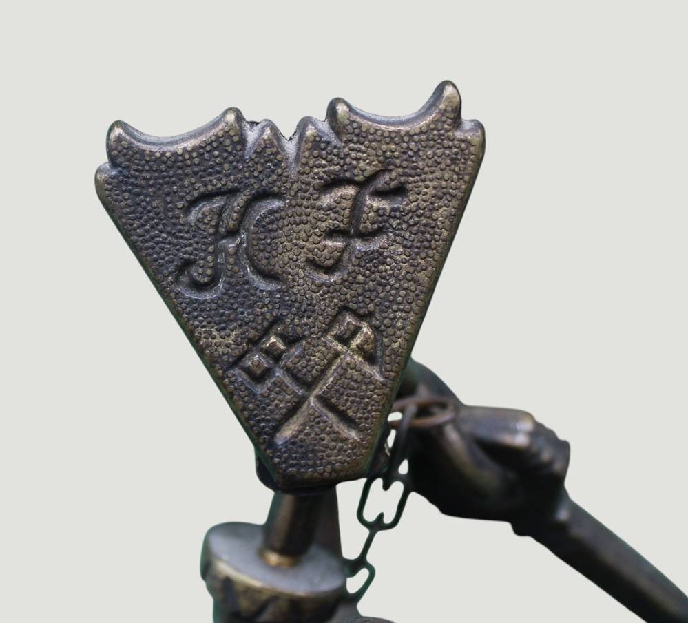 Bergbau Grubenlampe, sogen. Frosch mit Initialien, wohl Bronze, L-ca. 17 cm [1]
