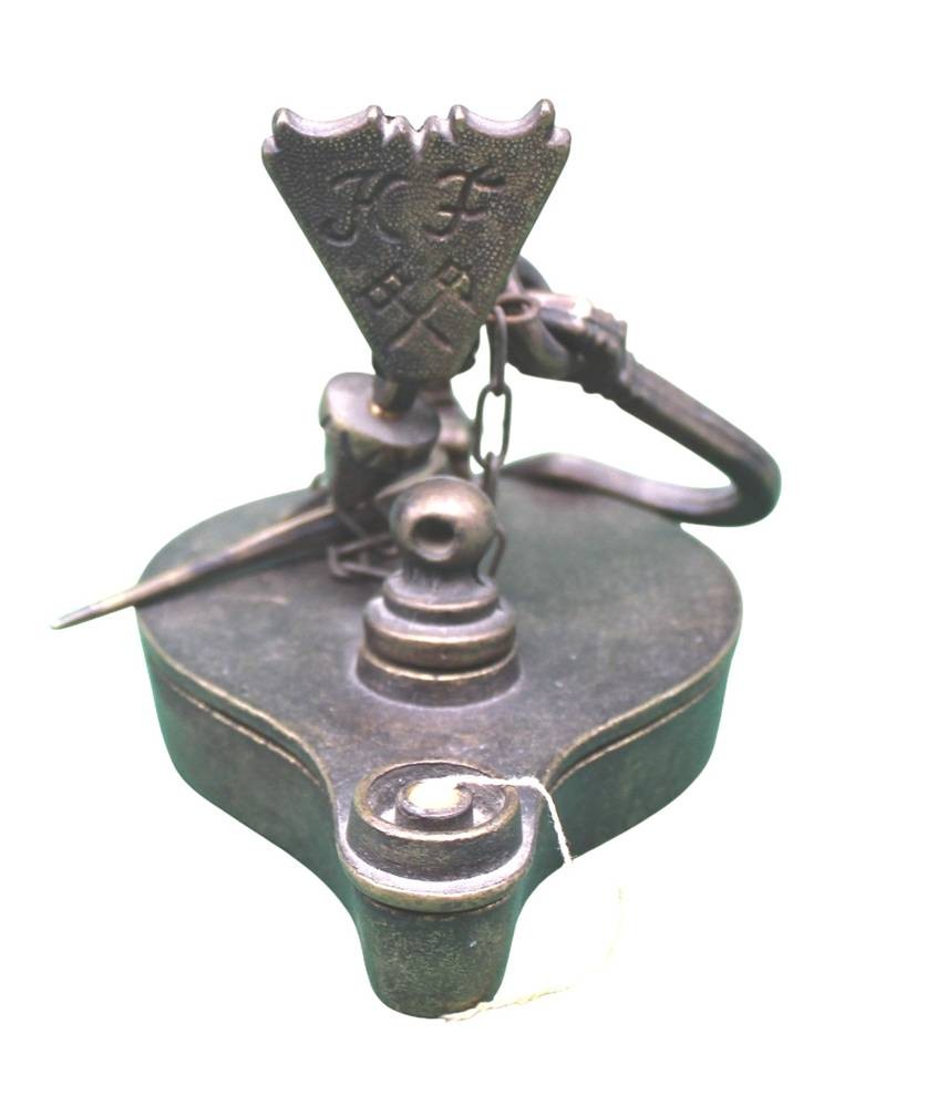 Bergbau Grubenlampe, sogen. Frosch mit Initialien, wohl Bronze, L-ca. 17 cm