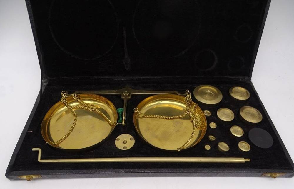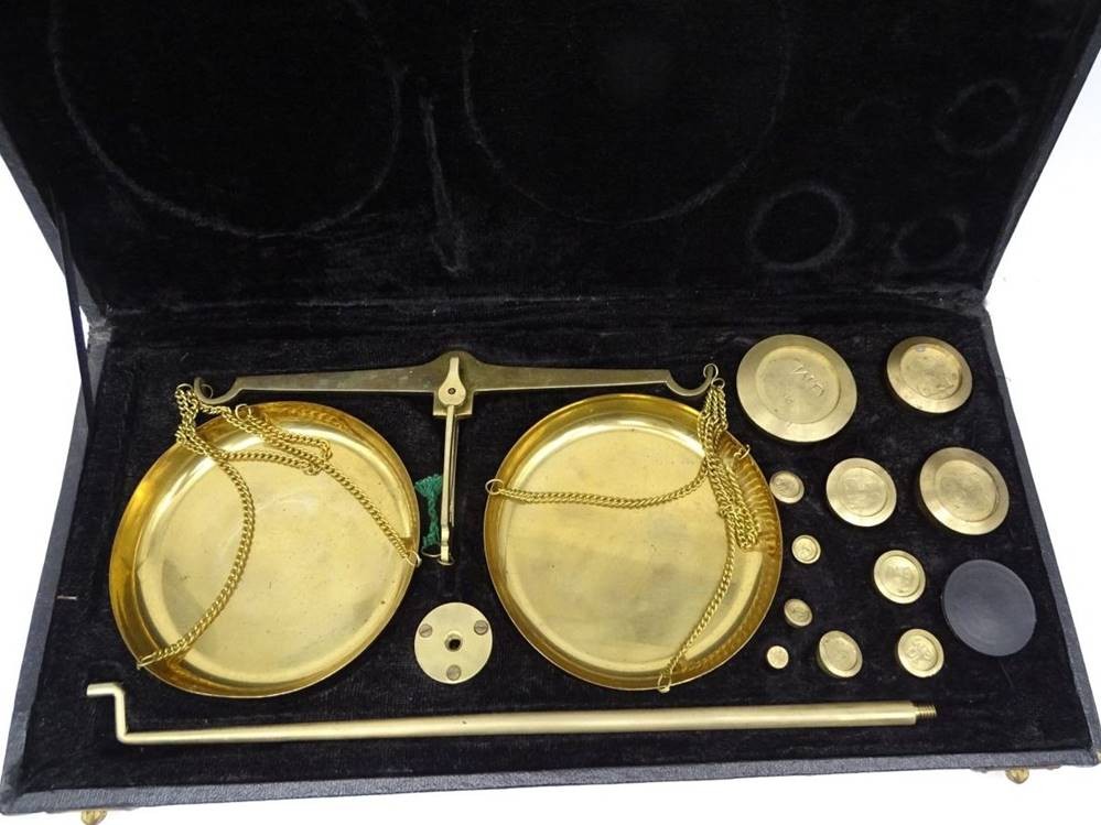 Feinwaage mit vielen Gewichten in orig. Kasten [1]