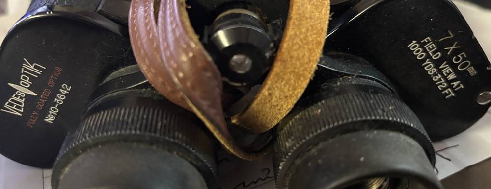 Fernglas in Lederköcher "Wedes-Optik" 7x50, in Lederköcher, H-18 cm, Gebrauchsspuren [1]