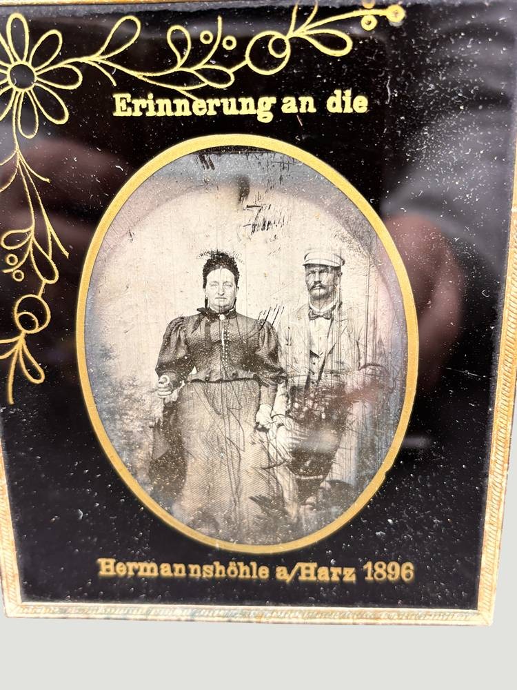 Ferrotypie "Erinnerung an die Herrmannshöhle/a. Harz, 1896"