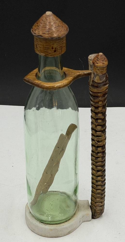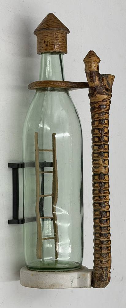 Flasche mit Halter und Leiter, wohl für Wetterfrosch? Deckel schraubbar, H-34 cm [1]