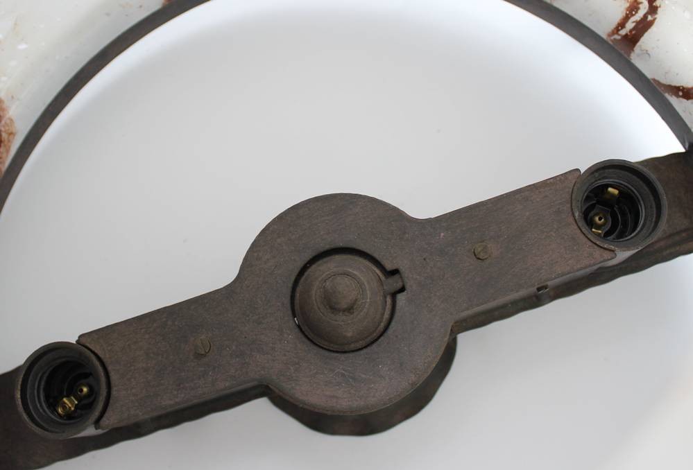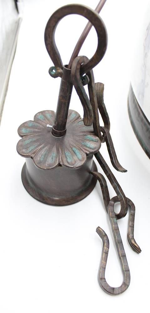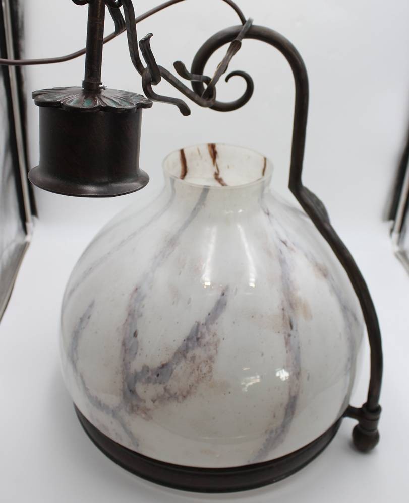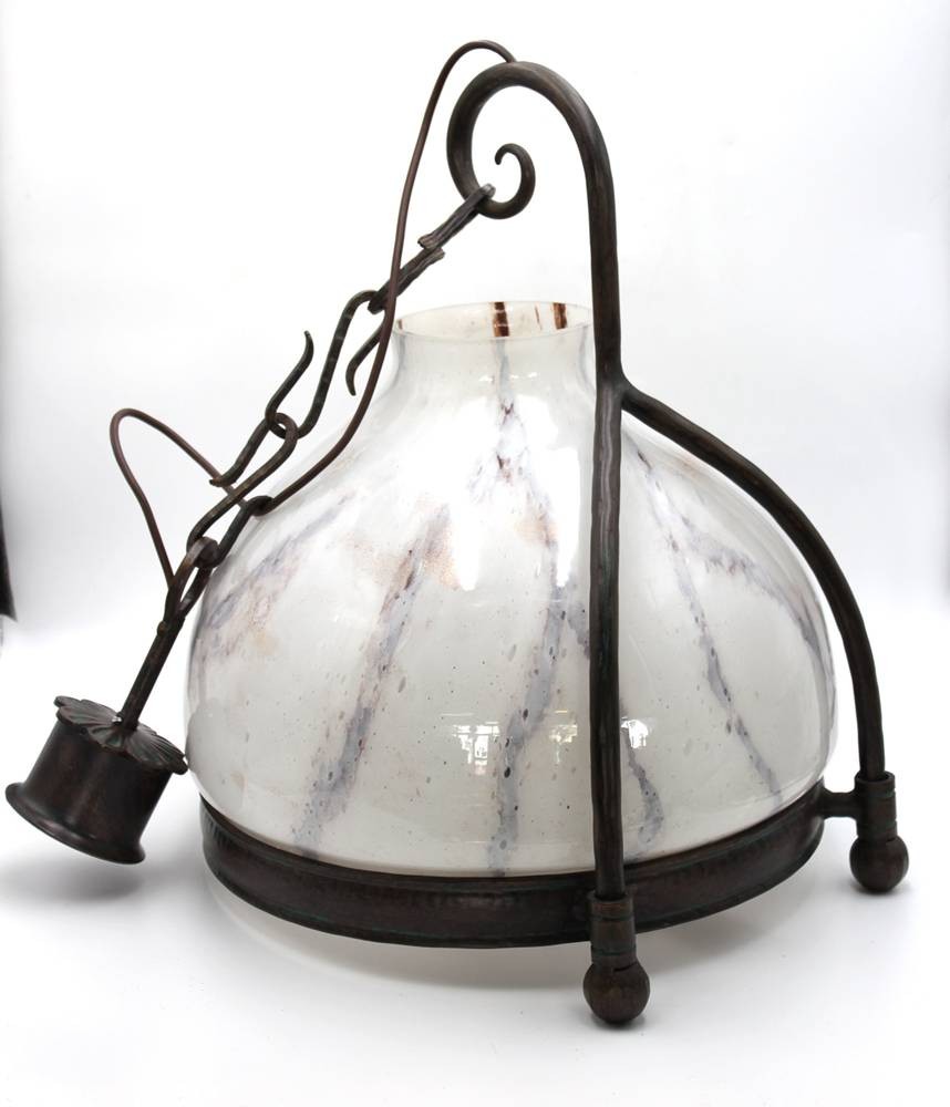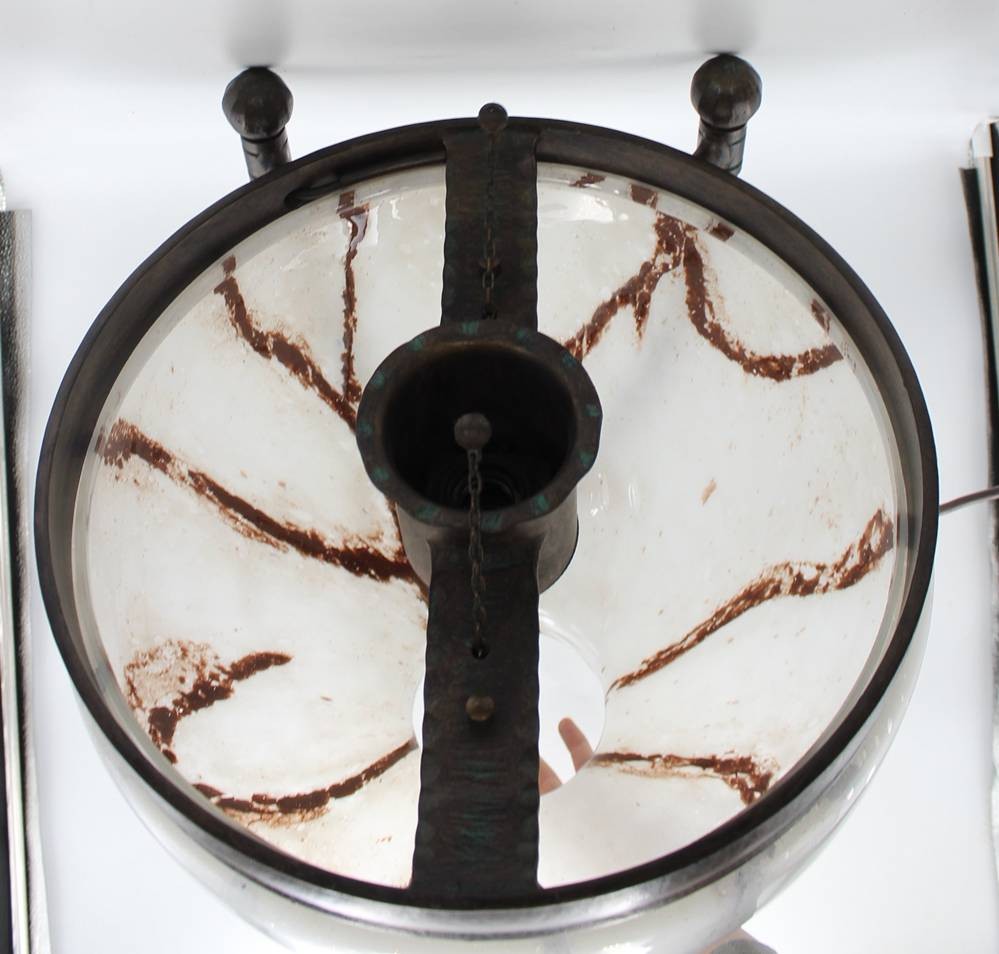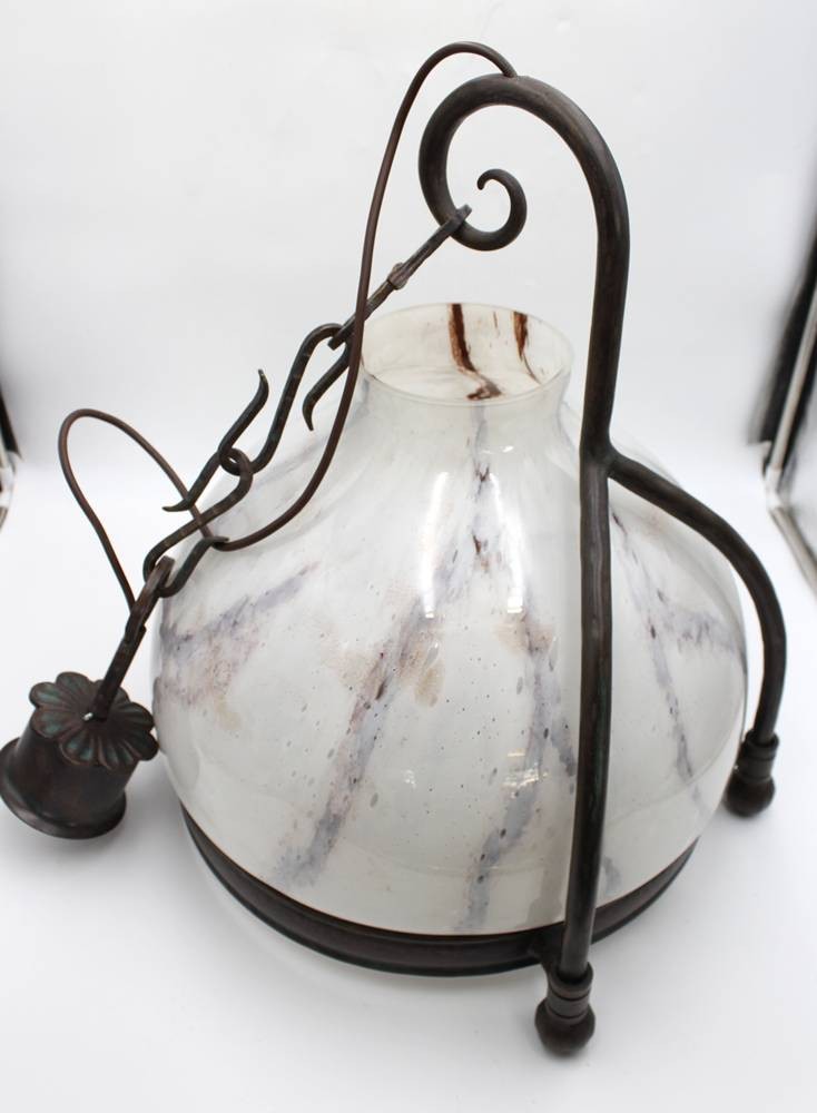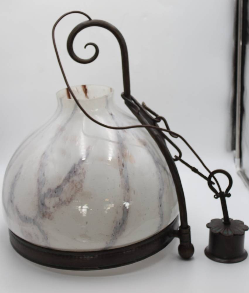 gr. Deckenlampe, Fibo, Milchglasschirm, ca. H-57cm D-45cm [1]