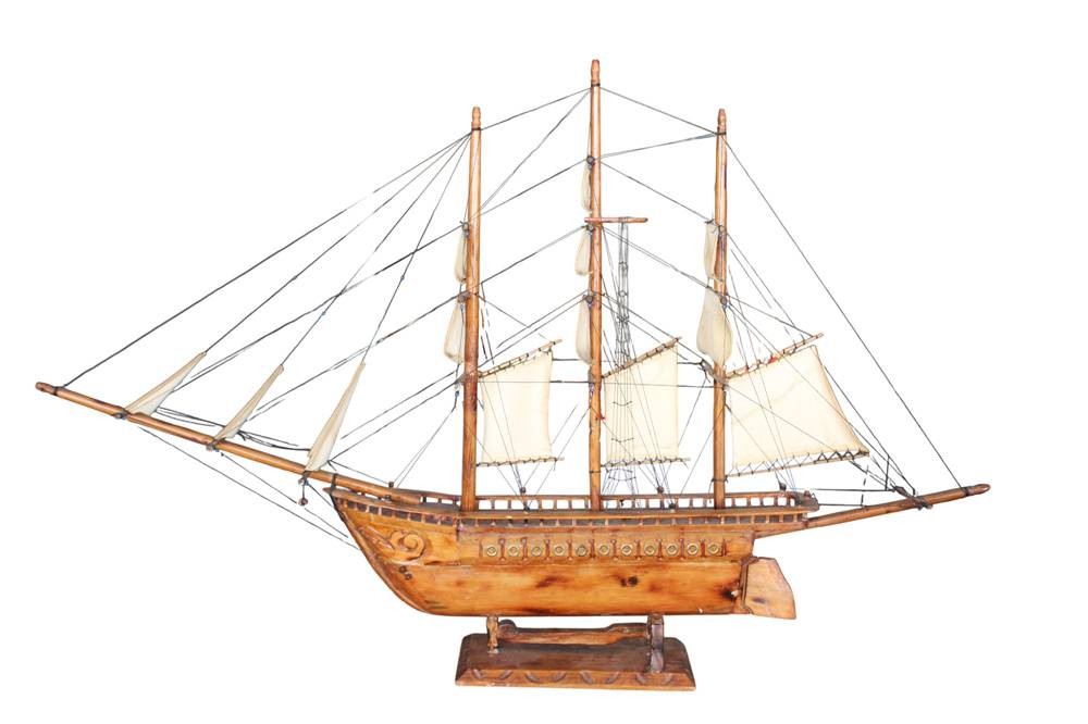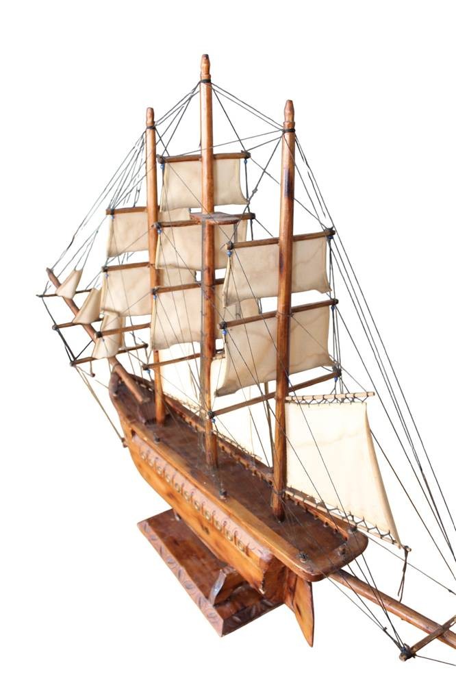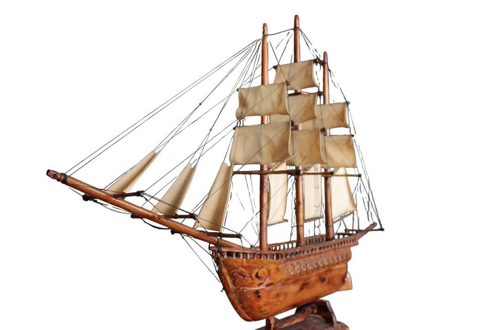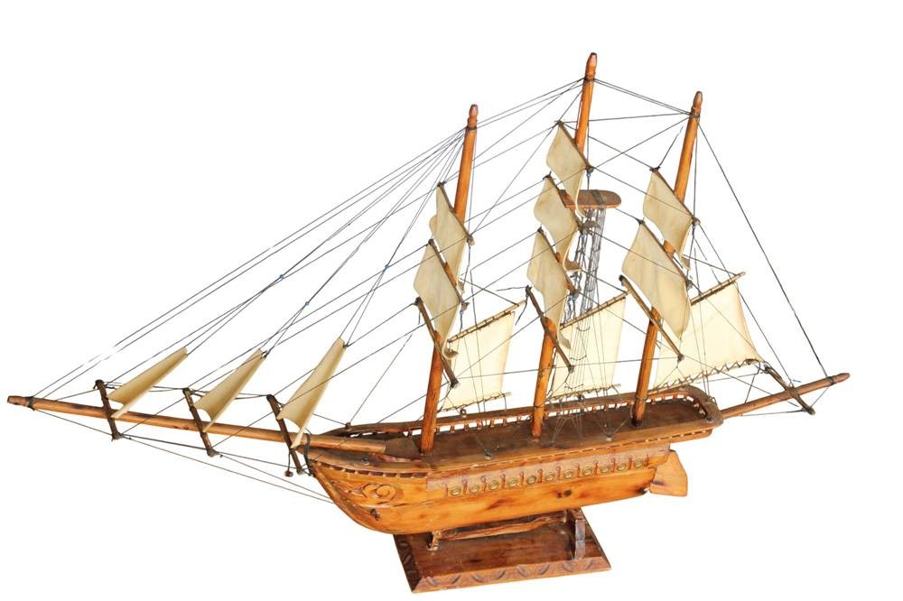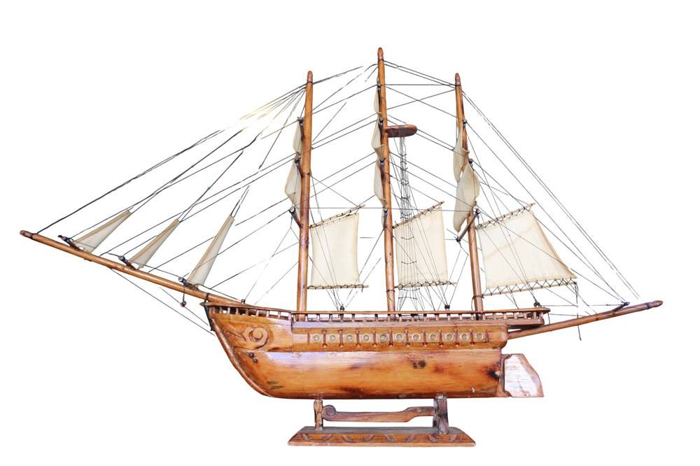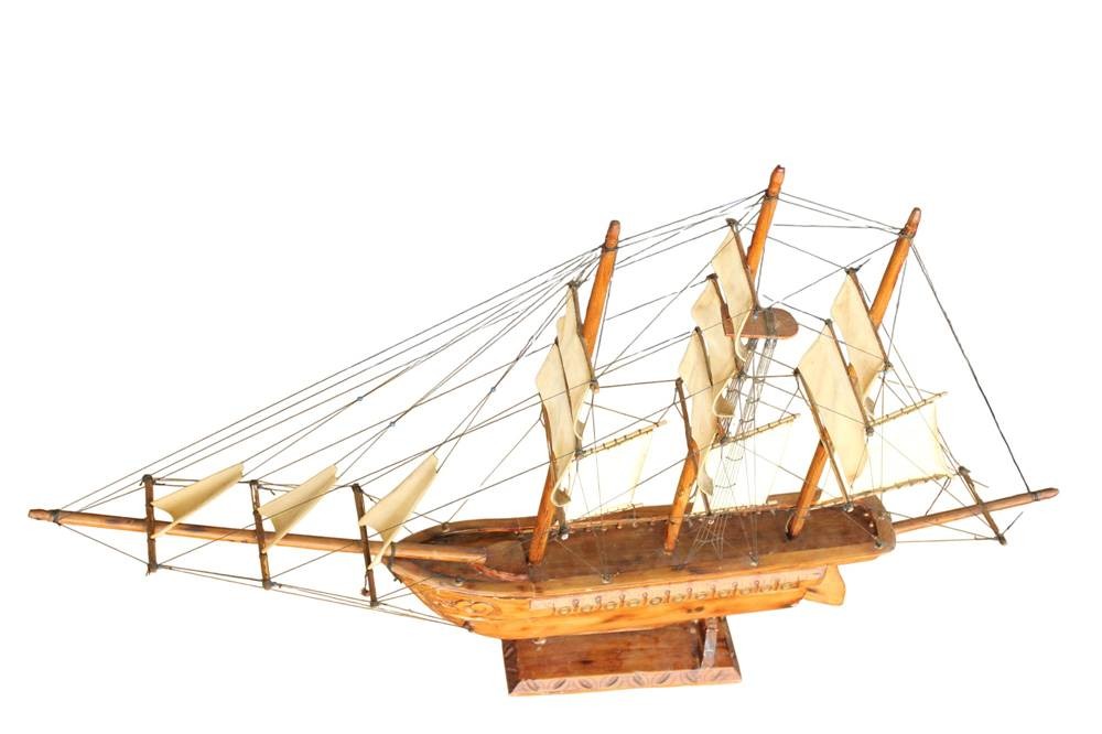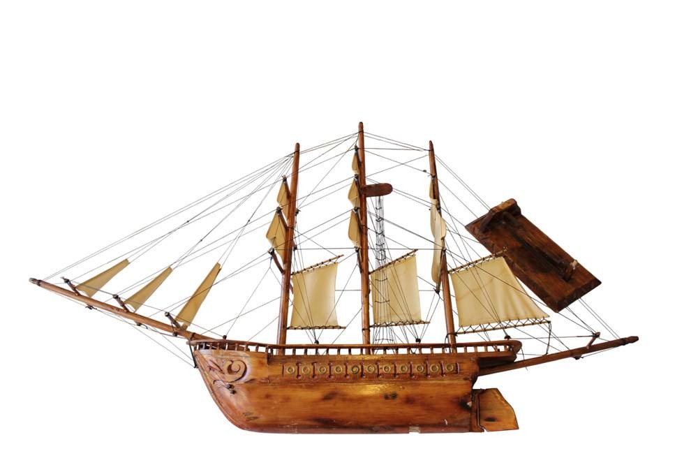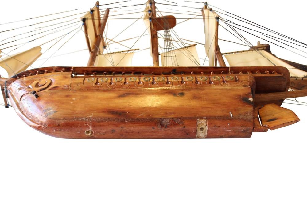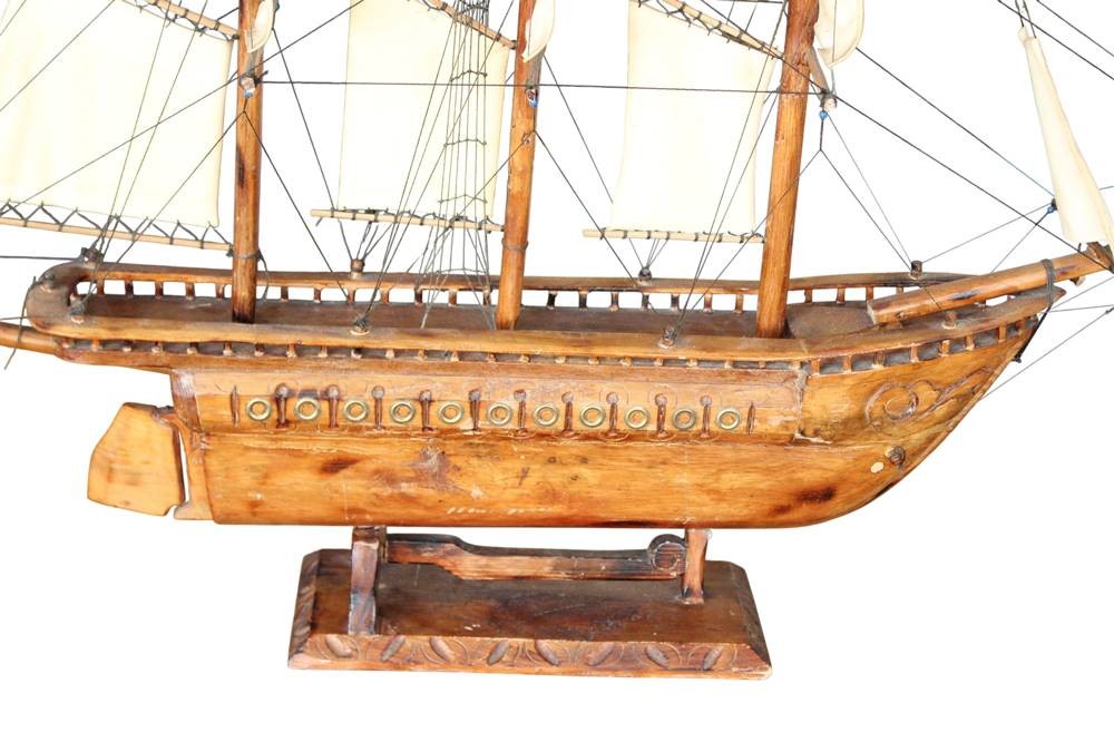 gr. Segelschiffmodell aus Holz, L-über alles 130 cm, H-81 cm, leicht rest. bedürftig, Versand Sperrgut. ca. 36 Euro BRD [1]