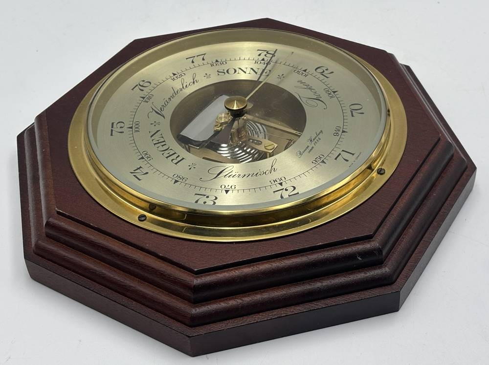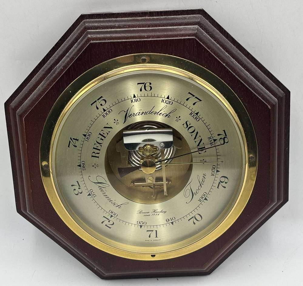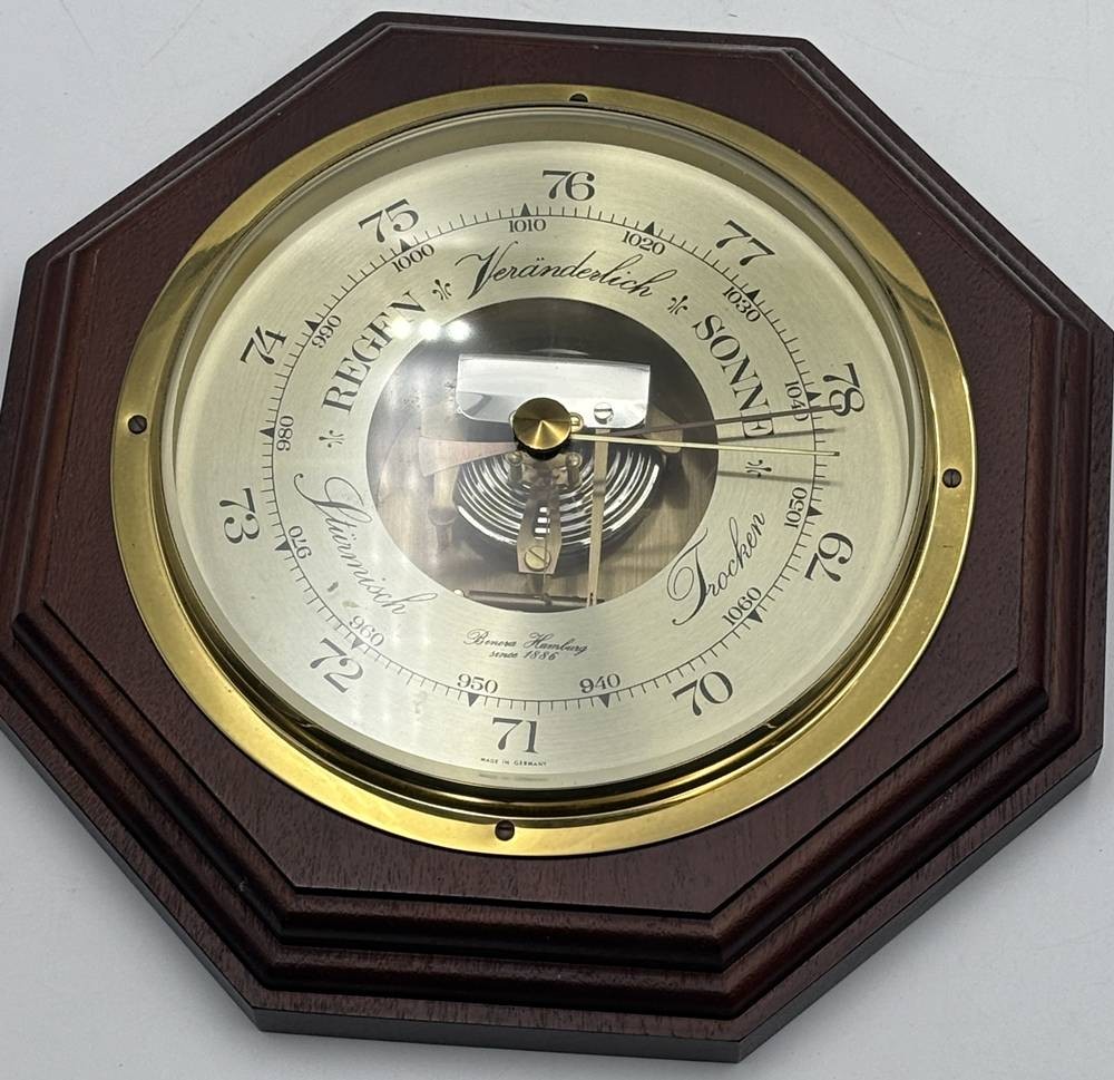 gr. Wandbarometer, "Benora" Hamburg, Holzgehäuse, D-24 cm