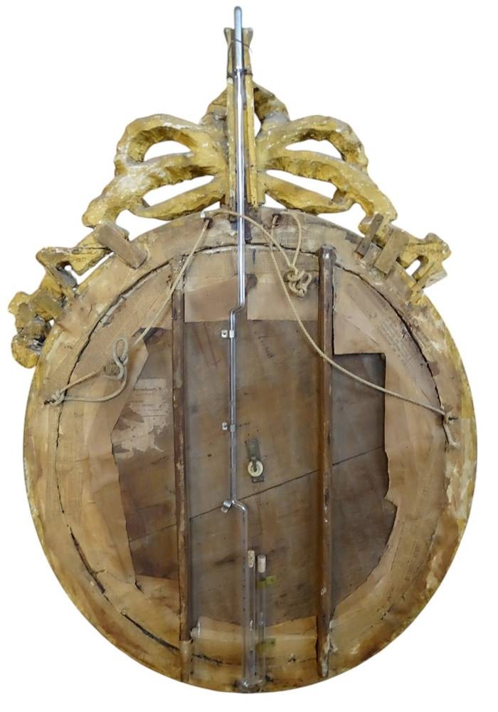 gr. Wandbarometer um 1770, vergoldetes Holzgehäuse, ftz. beschriftet, 85x60 cm, kl. Fehlteile bei Zierrahmen [1]